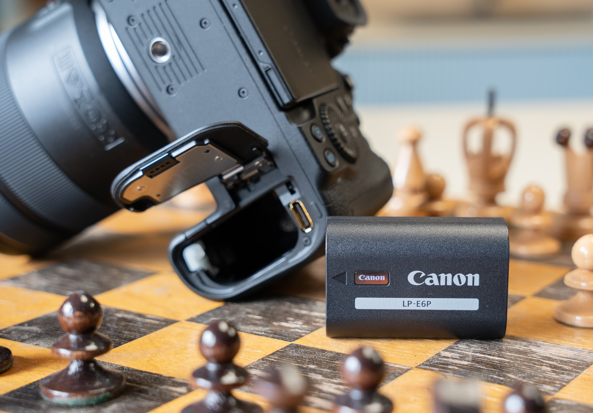 Podobnie jak R5 Mark II, również R6 Mark III zasilany jest akumulatorem LP-E6P o pojemności 2130 mAh. Zachowano częściową kompatybilność wsteczną, bowiem nie wszystkie funkcje będą działać ze starszymi ogniwami, oferującymi niższą wydajność prądową. Nowy model ma umożliwić wykonanie 510 i 620 zdjęć, odpowiednio w trybie zwykłym i oszczędnym. Wygląda zatem na to, że ma on większy apetyt na energię elektryczną, bowiem u poprzednika producent podaje maksymalną wydajność na poziomie 760 zdjęć. Warto również dodać, że R6 Mark III jest kompatybilny z uchwytem GB-R20 (EP), tak samo, jak poprzednik.