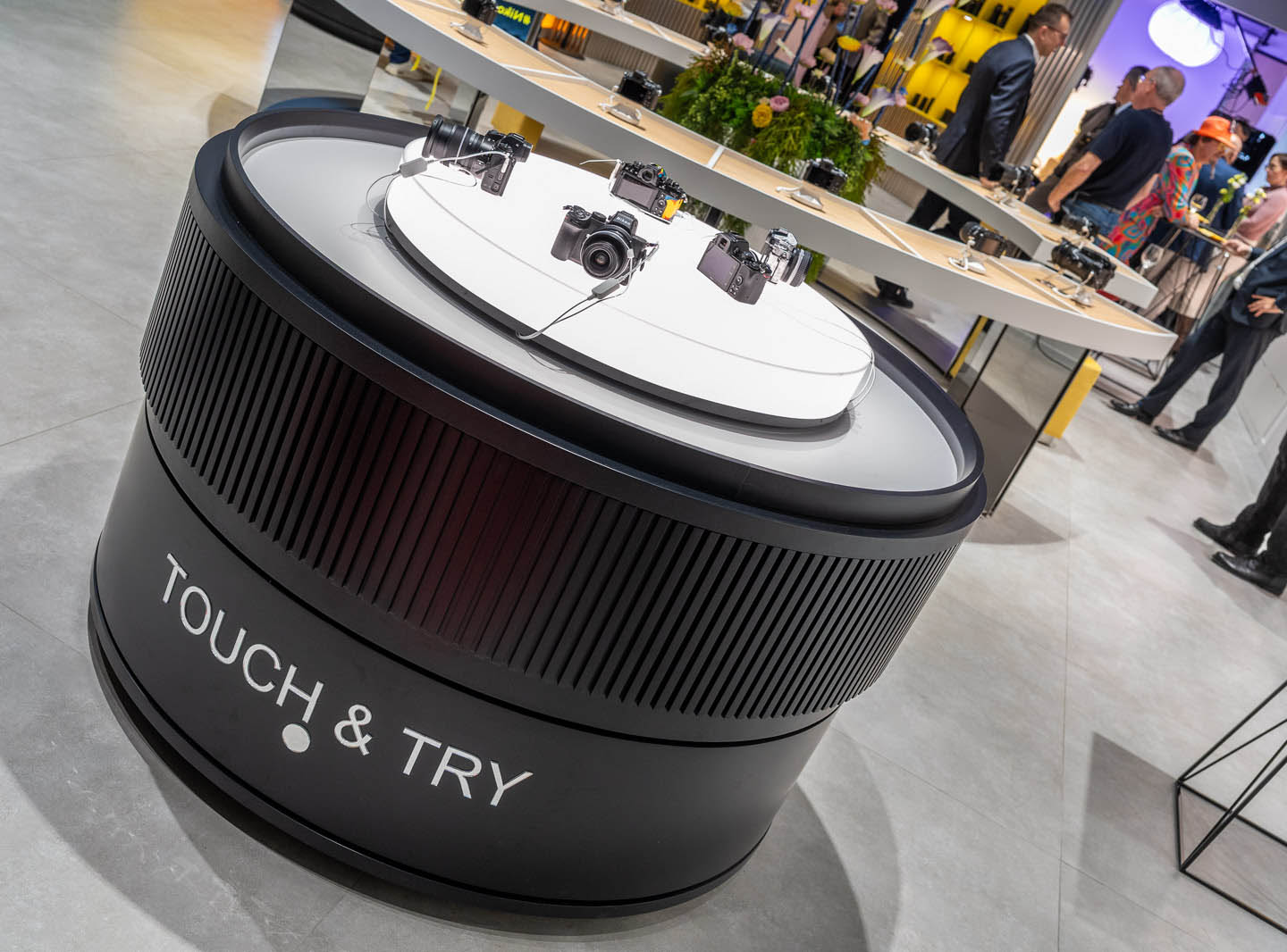 Sporo miejsca poświęcono dwóm bezlusterkowcom w stylu retro: pełnoklatkowemu Nikonowi Zf oraz DX-owemu Zfc, których kilkanaście egzemplarzy, w rozmaitych wersjach kolorystycznych można było zobaczyć zarówno w gablotkach, jak i na ekspozycji.