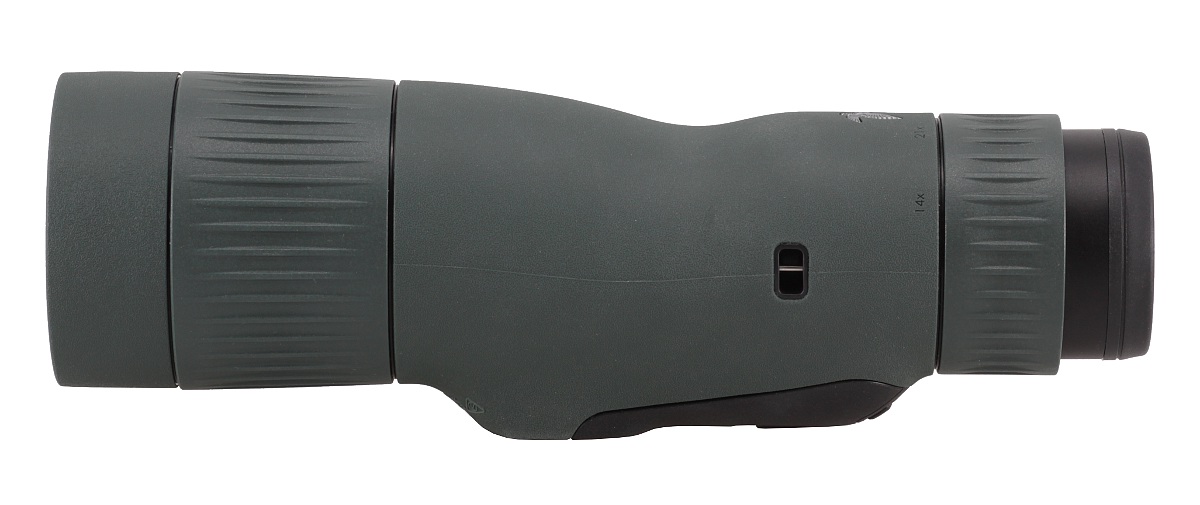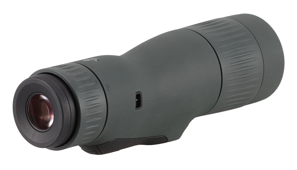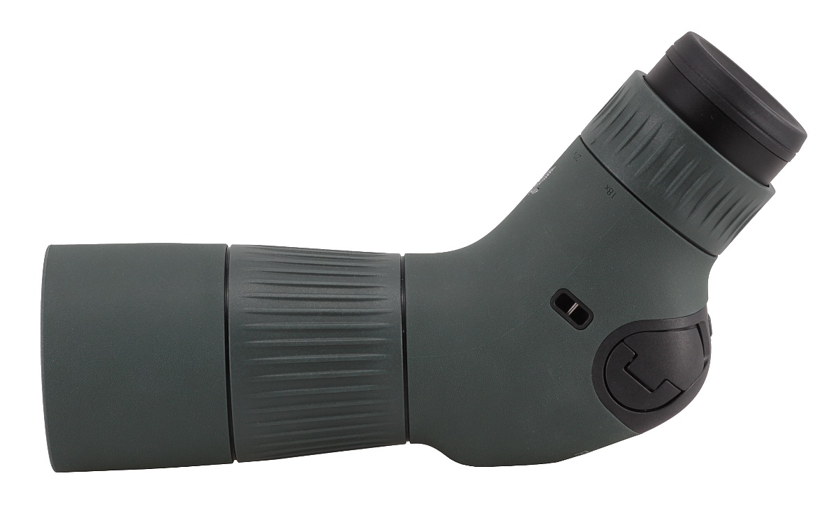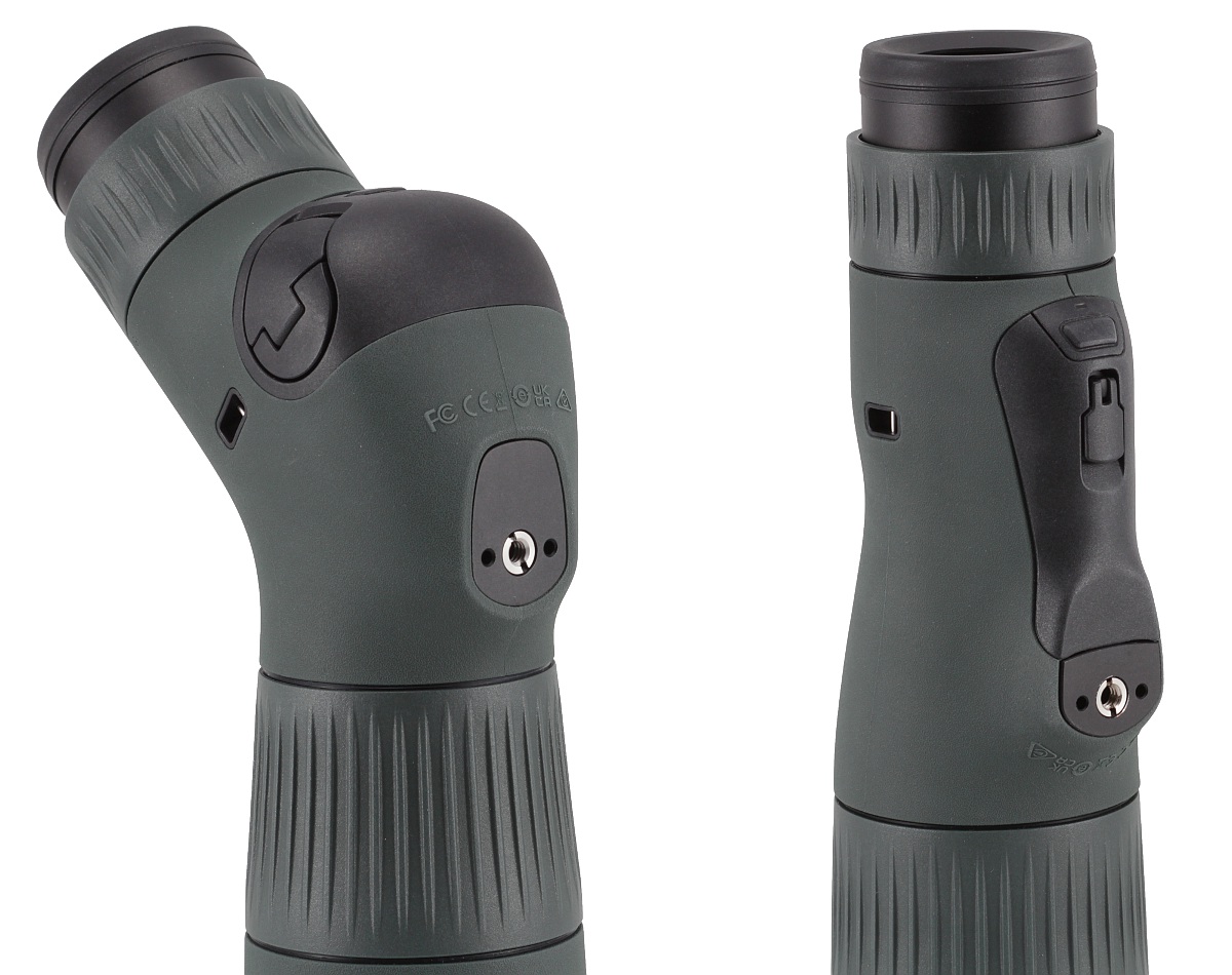 Oba modele mają ten sam parafokalny okular o krotności zooma wynoszącej 2.5 raza, wyposażony w wysuwaną muszlę okularową o płynnej regulacji. Ma on naprawdę duże rozmiary, ale m.in. dzięki temu daje imponujący zakres pól widzenia i to przy zachowaniu bardzo komfortowego odstępu źrenicy wynoszącego aż 20 mm. Owe pola zmieniają się w zakresie od 57 do 78 stopni. W efekcie model prosty daje nam zakres rzeczywistych pól widzenia od równych 4 do 2.2 stopnia, natomiast większy model kątowy od 3.16 do 1.74 stopnia. Obie lunety pozwalają ustawiać ostrość od odległości 3.4 metra.