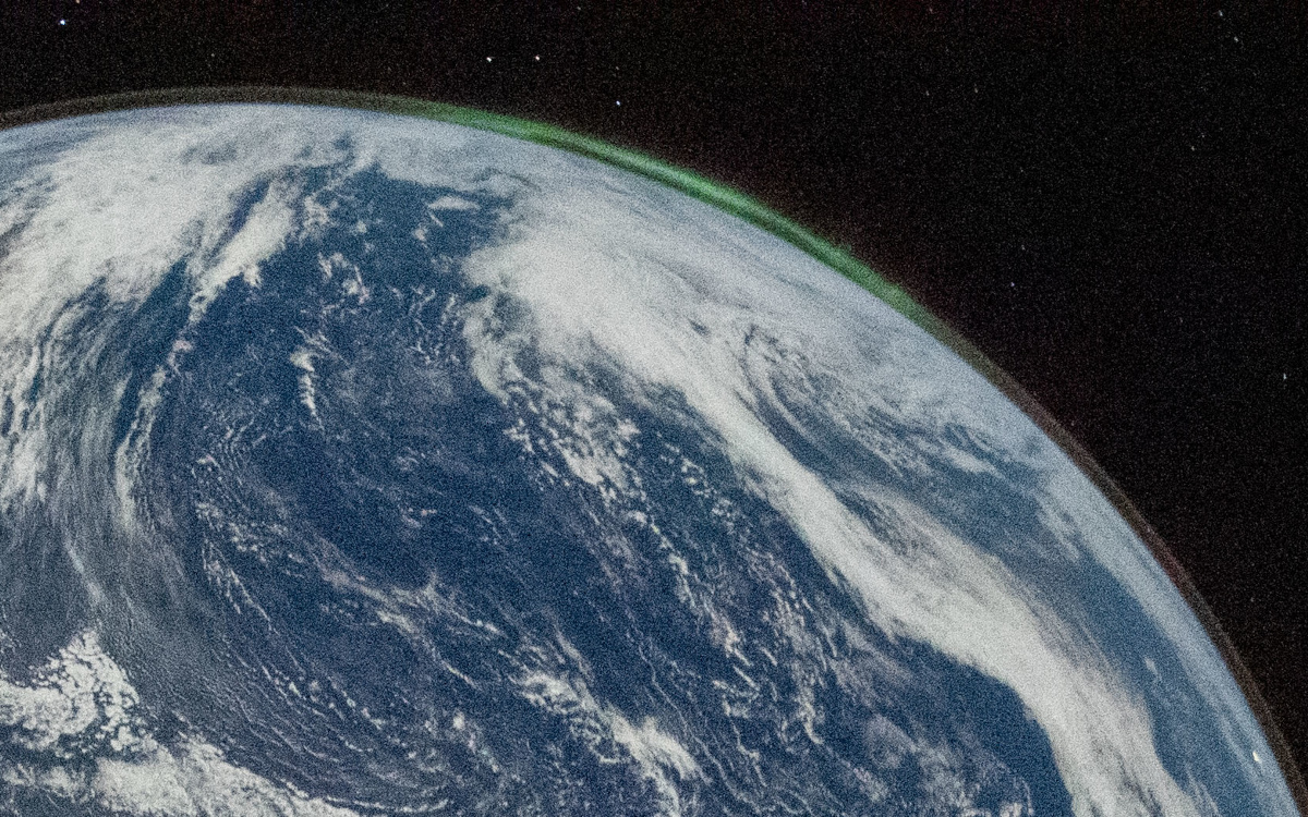 Ujęcie zyskało w ten sposób na uroku i oryginalności z kilku powodów. Po pierwsze, ponieważ Księżyc nie był dokładnie w pełni i odległość kątowa nie wynosiła dokładnie 180 stopni, prawa-dolna część ziemskiego globu świeci już światłem bezpośrednio odbitym od Słońca. Po drugie, widzimy tam zarysy kontynentów Afryki z fragmentem Europy oraz Ameryki Południowej, a ponieważ panuje tam noc, jesteśmy w stanie dojrzeć oświetlone miasta. Po trzecie, nad oboma biegunami widać zielonkawą poświatę zorzy polarnej. Szczególnie dobrze widać ją nad biegunem południowym.
