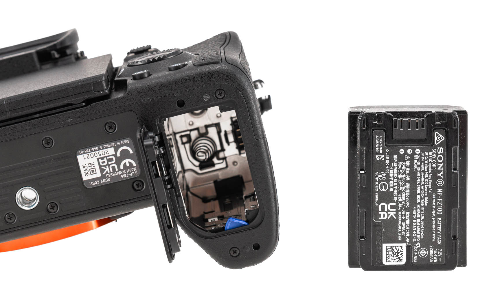 Testowany aparat zasilany jest litowo-jonowym akumulatorem o oznaczeniu NP-FZ100 o pojemności 2280 mAh i napięciu 7.2 V. Bateria ta stosowana jest w wielu modelach Sony i cieszy się dobrymi opiniami. W praktyce na w pełni naładowanym akumulatorze w studyjnych warunkach udało się nagrać 2 godziny i 46 minut materiału w 4K w 25 kl/s z wykorzystaniem całej szerokości matrycy. Jest to wynik imponujący, zarówno w porównaniu z innymi korpusami Sony, jak i z konkurencją. Odpowiada zań zapewne zastosowany w nowym modelu sprawniejszy energetycznie procesor Bionz XR2.
