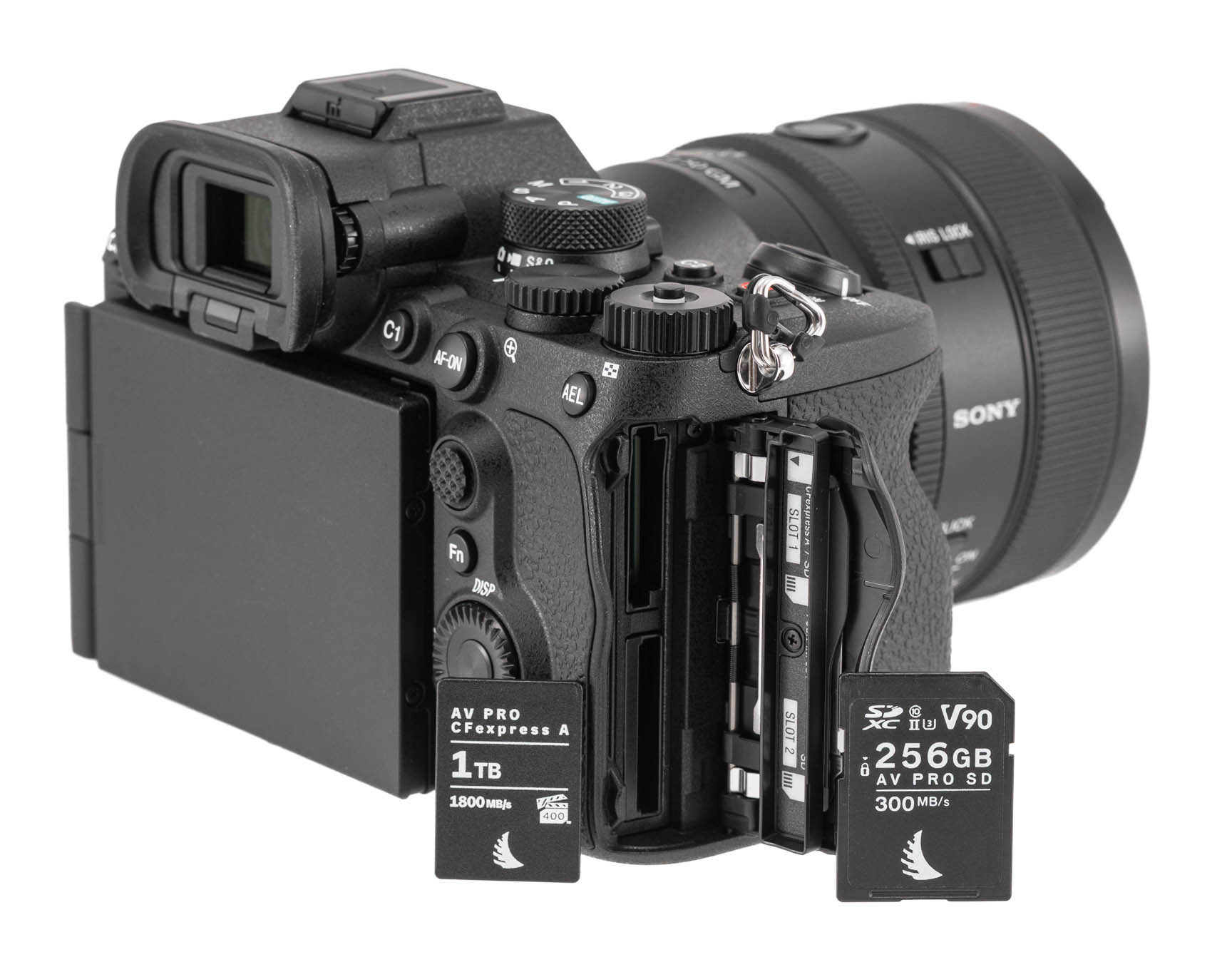 Jeśli chodzi o gniazda kart pamięci, to sytuacja w A7 V wygląda identycznie jak u poprzednika. Do dyspozycji użytkownika jest zatem jedno gniazdo typu combo, obsługujące zarówno nośniki CFexpress typu A, jak i karty SD, oraz drugie gniazdo obsługujące już wyłącznie karty SD. Oba sloty SD oferują przy tym kompatybilność ze standardem UHS-II.Testowany aparat oferuje funkcję jednoczesnego zapisu filmów na obie karty, o ile tylko nie korzystamy z trybu nagrywania generującego zbyt duży strumień danych dla kart SD. Ale trybem takim jest chyba jedynie 4K w 100 kl/s w kodeku All-Intra, więc to dość niszowa sytuacja.