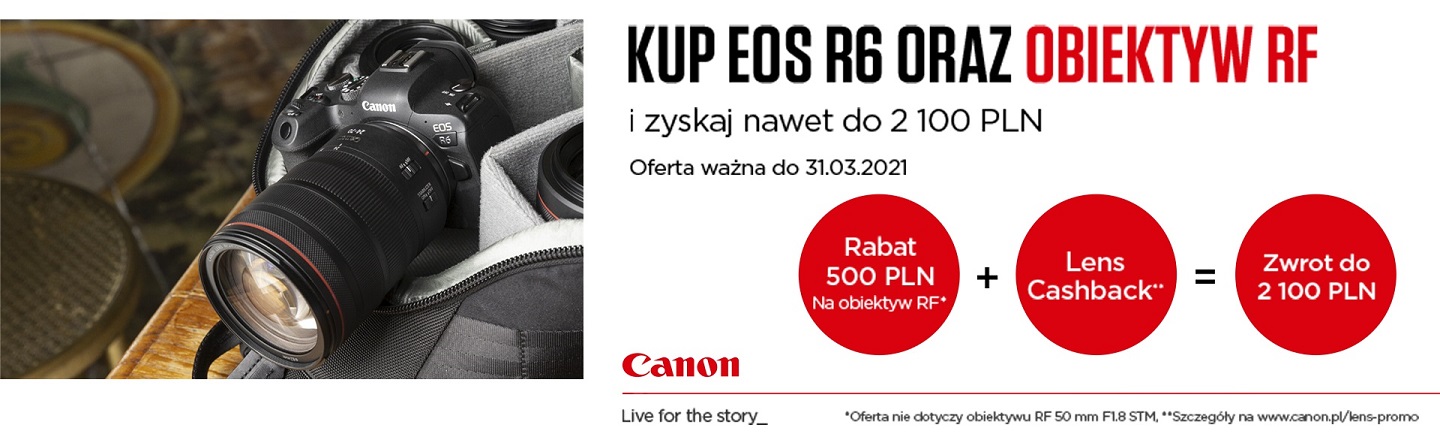 Kup Canon EOS R6 z wybranym obiektywem Canon RF i odbierz 500zł natychmiastowego rabatu!