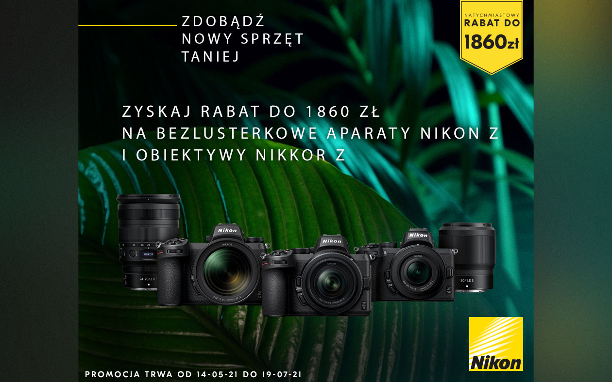 Natychmiastowy rabat Nikon | Zyskaj rabat do 1860 zł na aparaty Nikon Z i obiektywy Nikkor Z