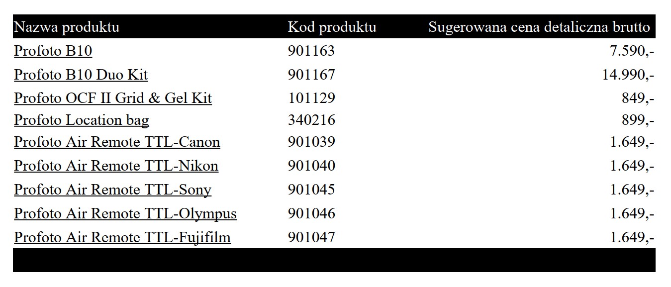 - Oferta dostępna jest u Autoryzowanych Dealerów Profoto w Polsce.