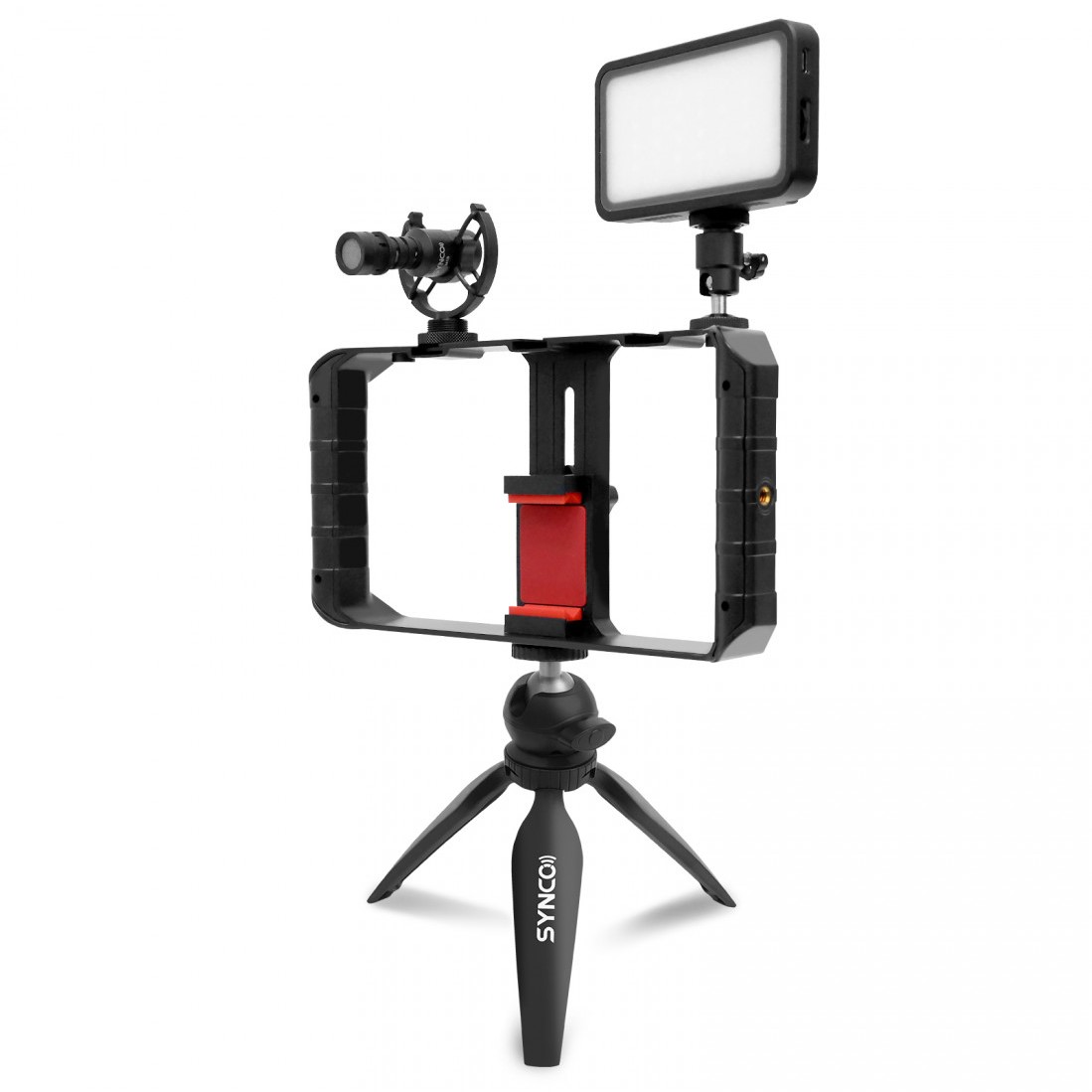 Synco Vlogger Kit 1 - na zestaw składa się mikrofon kierunkowy SYNCO M1S, oświetlenie w postaci panelu LED, antywstrząsowy uchwyt do mikrofonu, uchwyt wideo do smartfonu i mini statyw stołowy. Wszystkie te elementy zostały połączone w jedną funkcjonalną całość, aby vlogowanie było jeszcze łatwiejsze i przyjemniejsze a tworzone filmy, jak najwyższej jakości.