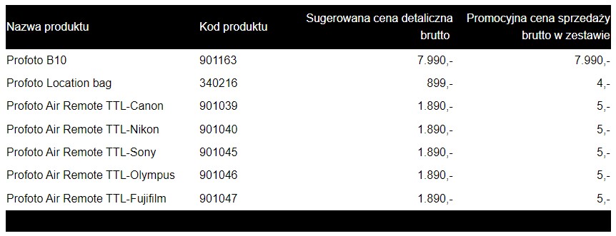 - Oferta dostępna jest u Autoryzowanych Dealerów Profoto w Polsce.