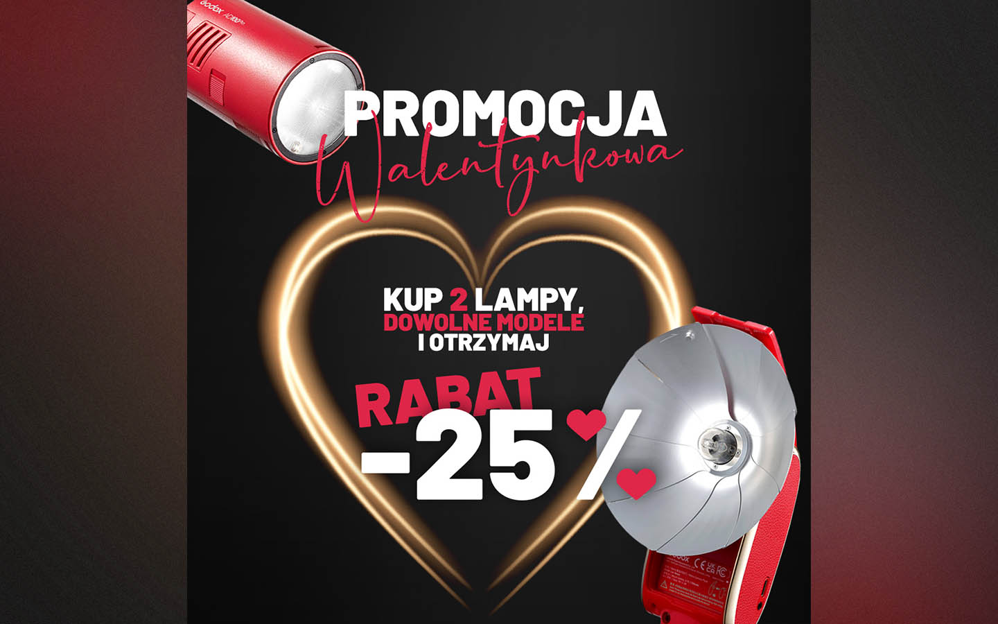 W duecie raźniej, dlatego w Godox Polska ruszyła wyjątkowa promocja walentynkowa. Do 14 lutego włącznie, kupując co najmniej 2 lampy lub panele dowolnego typu, otrzymasz 25% rabat! I to nie na drugą lampę, ale na obie!