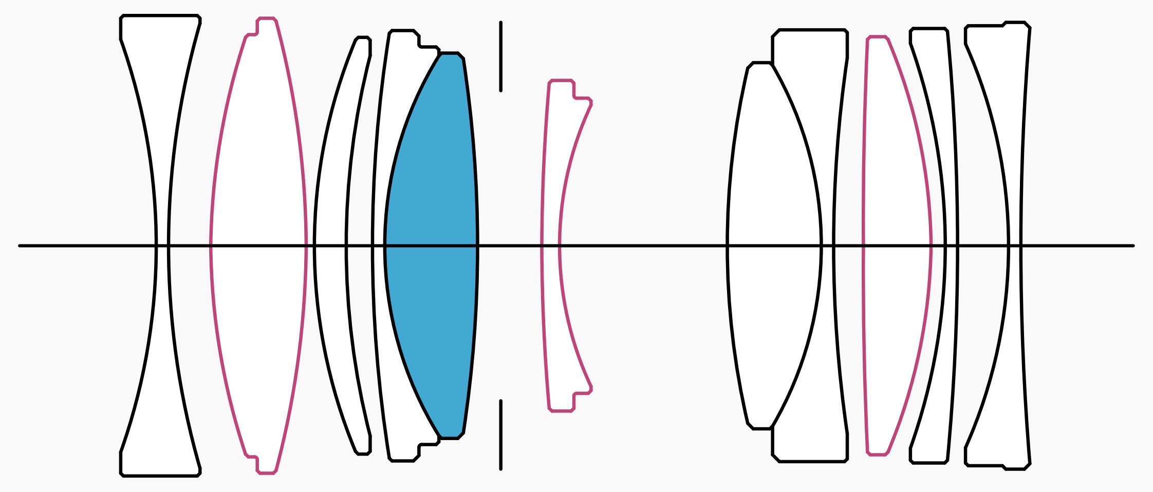 - Konstrukcja obiektywu: 11 elementów w 9 grupach. 1 elementy SLD, 3 elementy asferyczne