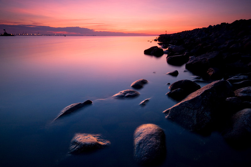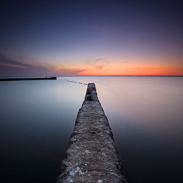 Falochron z pierwszego zdjęcia skierowany jest na północny wschód. Widać to na google maps w linku nadesłanym przez hijax_pl. Słońce w lecie na tej szerokości geograficznej (półkula północna) zachodzi na północnym zachodzie o oświetla słupy falochronu z lewej strony. Zdjęcie uznane za najlepsze jest zrobione przed zachodem słońca, a nie o świcie.