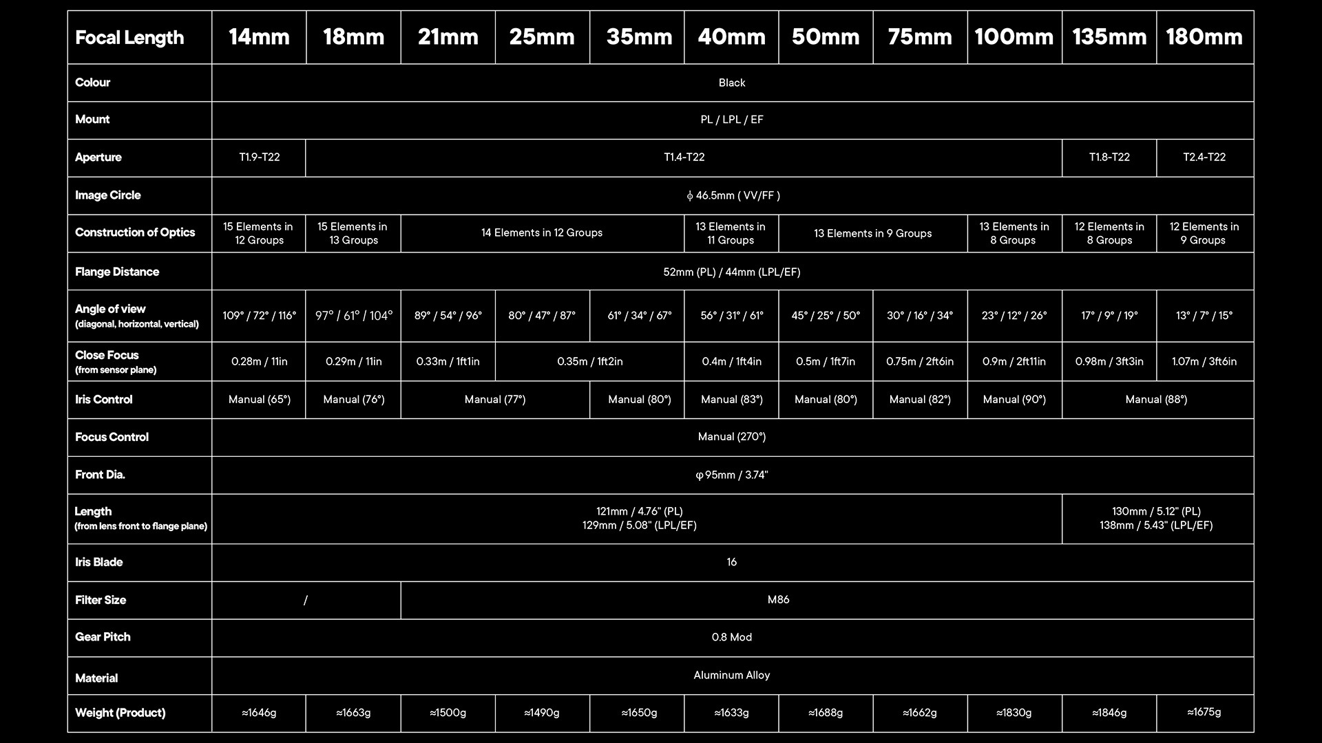 Według deklaracji producenta zestaw ma wyróżniać się dobrze skorygowanym obrazem o pewnym stopniu miękkości na maksymalnym otworze względnym i świetnej ostrości po przymknięciu. Obiektywy mają też dobrze panować nad flarami, w czym mają pomóc nowoczesne powłoki antyodblaskowe. Ich koło obrazowe obejmuje sensory pełnoklatkowe i Vista Vision, a w części przypadków nawet większe.