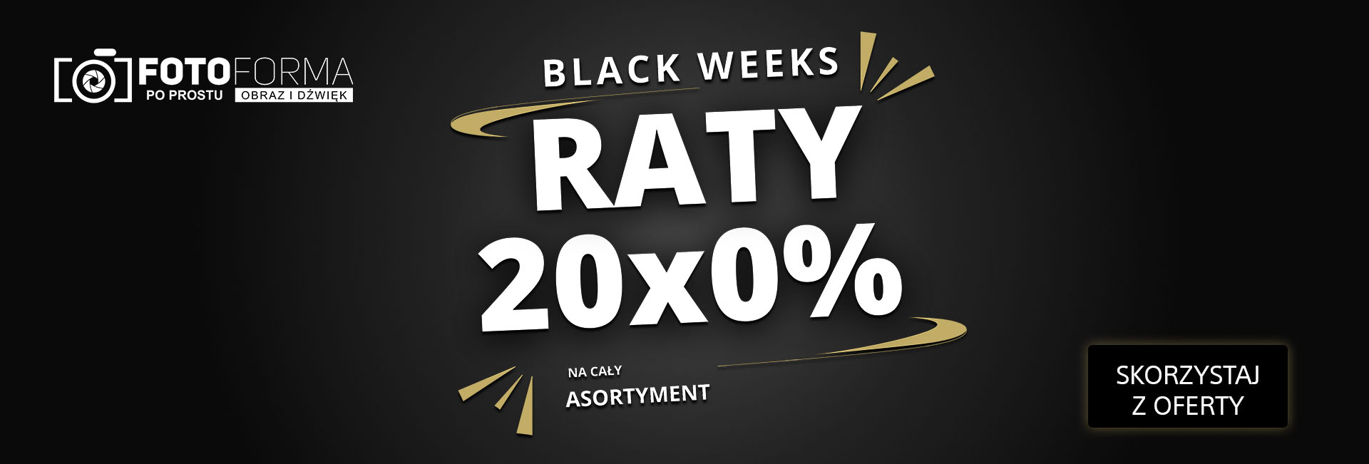 Sklep Fotoforma.pl ogłasza rozpoczęcie promocji Black Weeks. Obejmują one sprzęt wielu popularnych marek, a całość można sfinansować w systemie rat 20 × 0%.