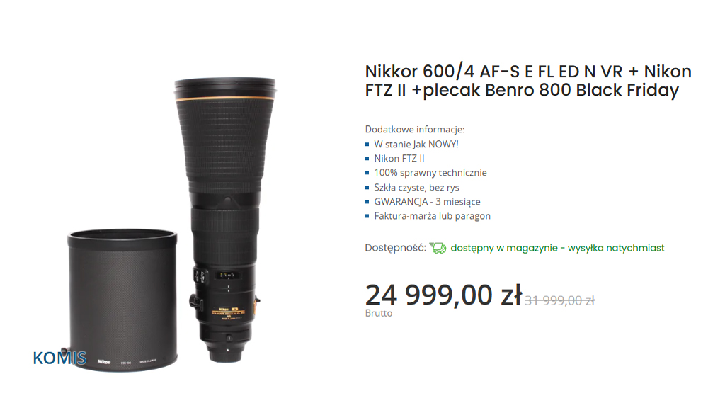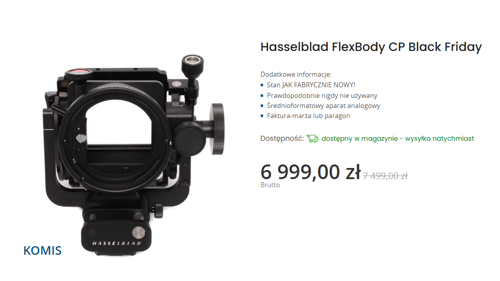 Black Friday w e-oko to także świetna okazja, aby zapoznać się z ofertą komisu fotograficznego, gdzie dostępne są starannie sprawdzone egzemplarze sprzętu w atrakcyjnych cenach. Dzięki temu możliwe jest rozszerzenie własnego zestawu o wysokiej klasy aparaty i obiektywy, pozostając przy rozsądnym budżecie.