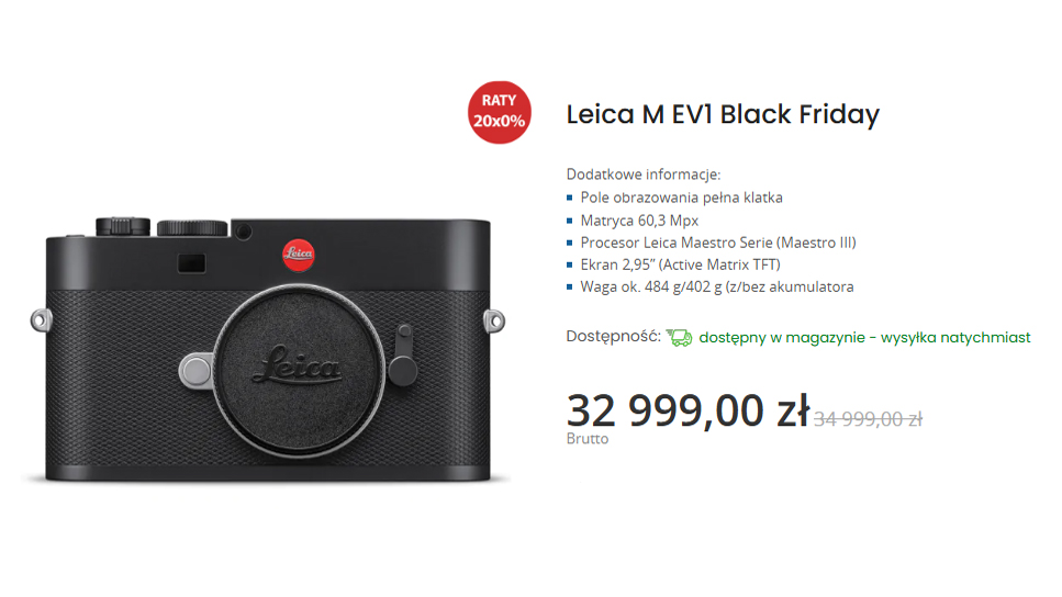 Swoje promocje z okazji Black Friday przygotował także sklep i komis fotograficzny e-oko.pl. Obniżki objęły zarówno sprzęt nowy, jak i używany, i sięgają nawet 7000 zł.