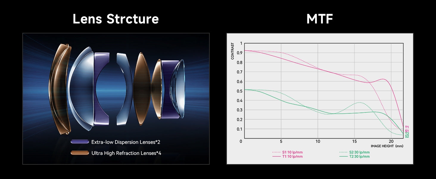 - Konstrukcja: 10 elementów / 9 grup (2 elementy ze szkła ED, 4 elementy ze szkła HR),