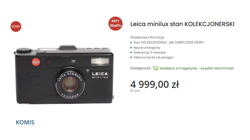 - Leica minilux stan KOLEKCJONERSKI – 4 999 zł
