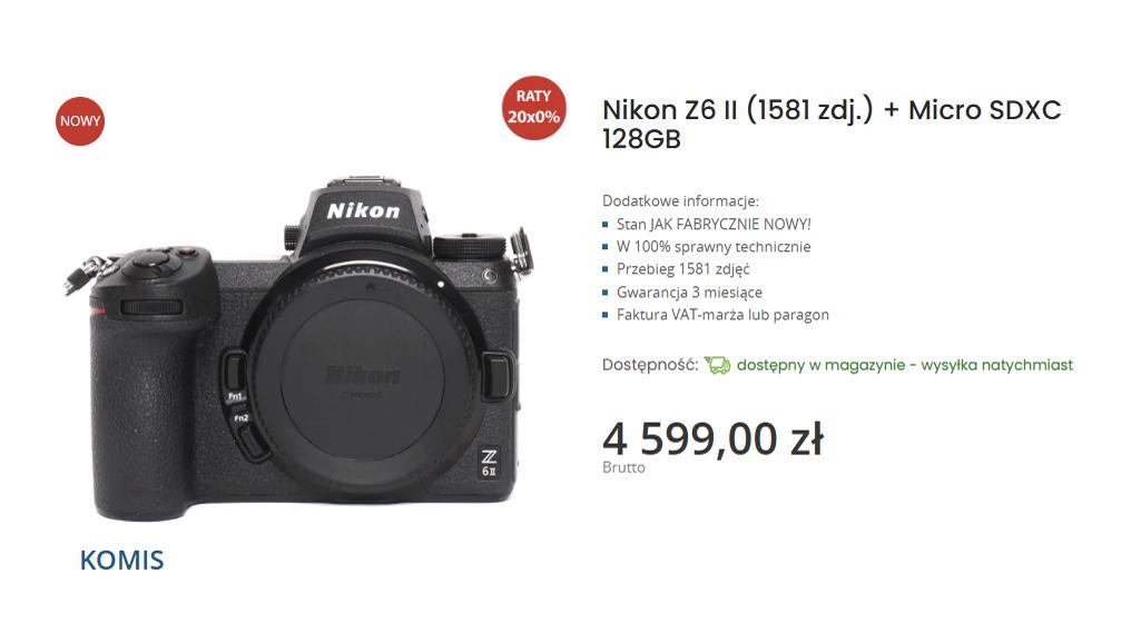 - Nikon Z6 II (1581 zdj.) + Micro SDXC 128GB – 4 599 zł