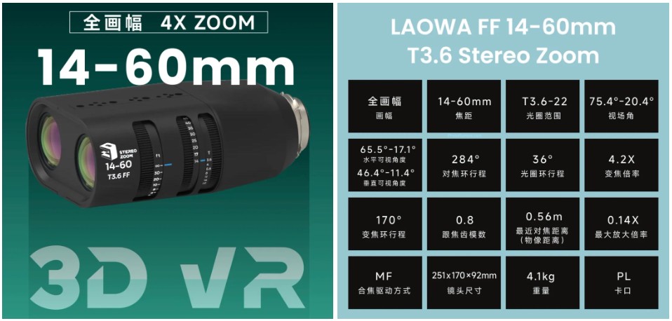 Kolejnym instrumentem Laowa, który zobaczymy w 2026 roku jest stereoskopowy zoom FF 14-60 mm T3.6, przeznaczony do kamer z mocowaniem Arri PL.