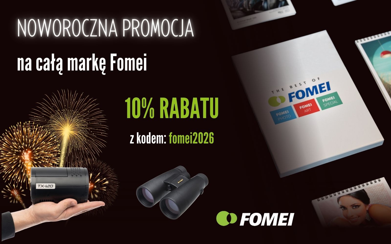 Sklep Rudy Lis przygotował noworoczną promocję na wszystkie produkty marki Fomei. W ramach akcji klienci mogą skorzystać z 10% rabatu na cały asortyment Fomei, w tym oświetlenie, akcesoria studyjne, papiery fotograficzne oraz optykę obserwacyjną.