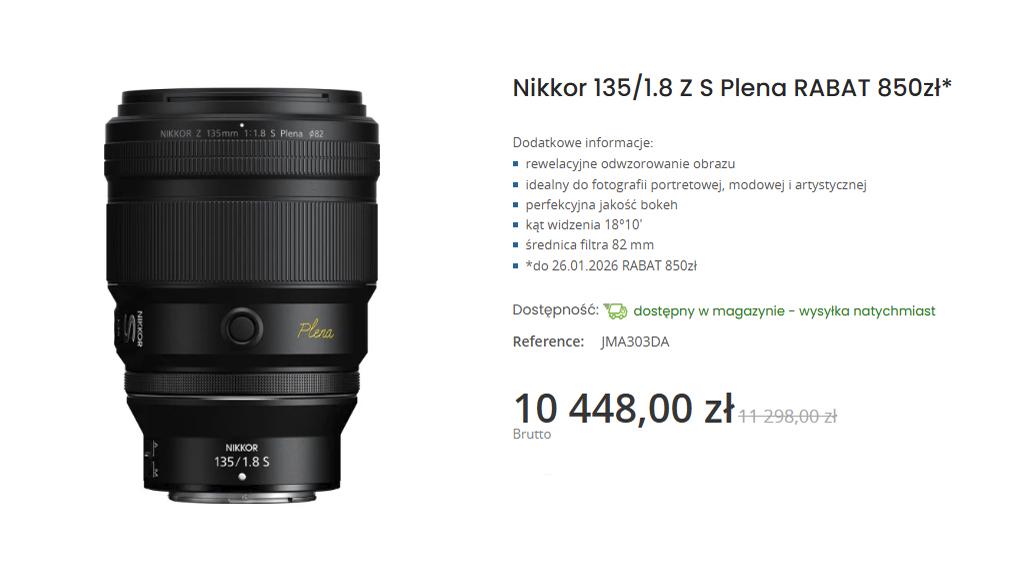 - Nikkor 135/1.8 Z S Plena – 10 448 zł