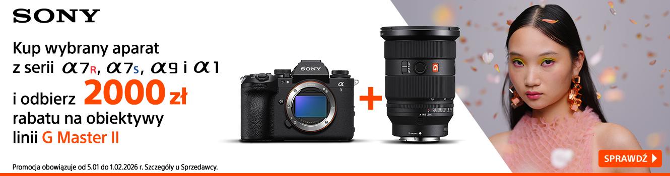 Od 05.01.2026 do 01.02.2026 przy zakupie wybranych aparatów Sony otrzymasz rabat 2000 zł na zakup wybranych obiektywów z serii GM2!