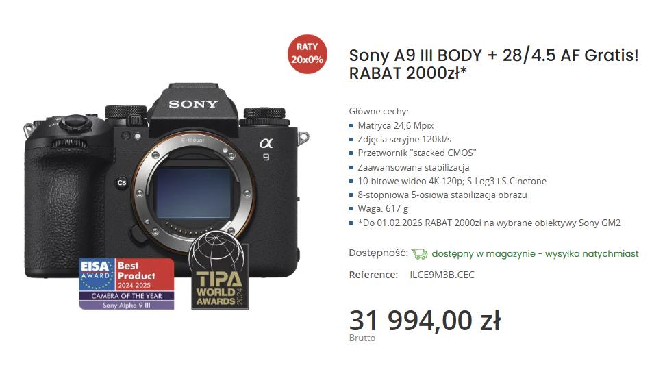 Druga akcja promocyjna skierowana jest do osób poszukujących wszechstronnego i uniwersalnego korpusu. W okresie od 19 do 31 stycznia 2026 roku aparat Sony A7 IV dostępny jest z natychmiastowym rabatem 800 zł, a dodatkowo objęty cashbackiem w wysokości 700 zł. Łączna korzyść finansowa czyni ten model wyjątkowo atrakcyjnym wyborem dla fotografów i twórców wideo, którzy oczekują nowoczesnych rozwiązań w kompaktowej i uniwersalnej formie.
