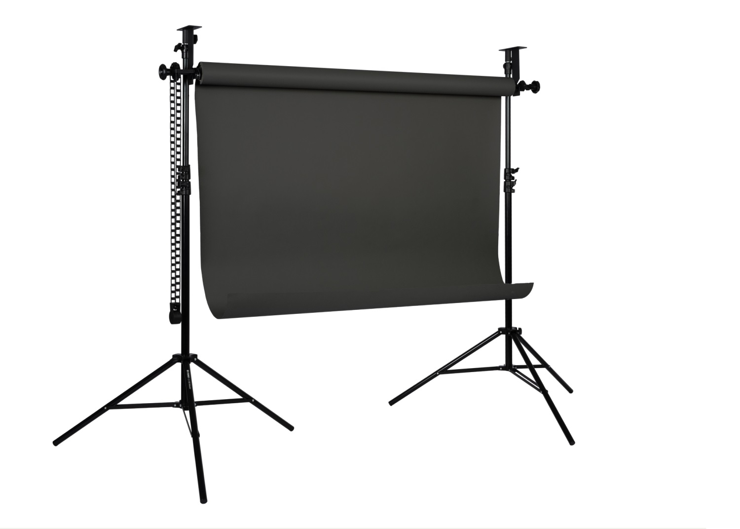 Manualny system B-3W oparty jest na solidnej konstrukcji ściennej, która zapewnia stabilność oraz prawidłowe napięcie tła. Rozwiązanie to eliminuje marszczenia i fałdy, co ma kluczowe znaczenie przy fotografii produktowej i nagraniach wideo w wysokiej rozdzielczości.