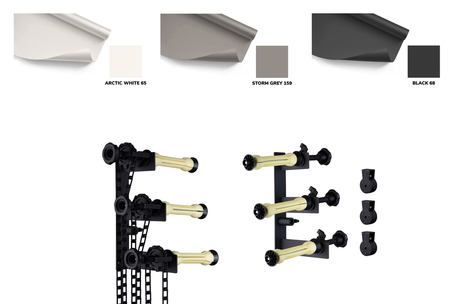 FOMEI Wall Background Kit W/G/B to kompletny, manualny system zawieszania teł B-3W zaprojektowany z myślą o fotografach, twórcach wideo oraz studiach, które potrzebują trwałego, estetycznego i wygodnego rozwiązania do pracy na stałym lub półstałym stanowisku. Zestaw zawiera trzy profesjonalne tła papierowe 2,72 × 11 m w klasycznych kolorach: białym, czarnym i szarym (Storm Gray), stanowiących fundament każdej sesji zdjęciowej - od portretów i packshotów, po produkcje wideo i projekty kreatywne.