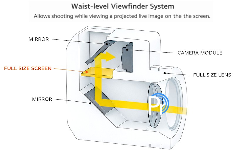 "The “screen” is not ground glass, but functions similarly to it and gives users a true view of the scene in front of them." link