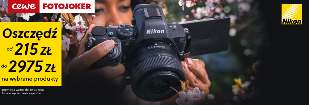 Czy wiesz, że kupując wybrane produkty Nikon w CEWE FOTOJOKER, możesz uzyskać nawet do 2975 zł rabatu? Jeśli masz już na oku wymarzony sprzęt lub wręcz przeciwnie, dopiero szukasz nowego aparatu lub obiektywu, który pozwoli Ci w pełni realizować Twoje wizje fotograficzne, teraz jest czas, aby zapoznać się z ofertą. Promocja ważna do 30.03.2026 lub do wyczerpania zapasów.