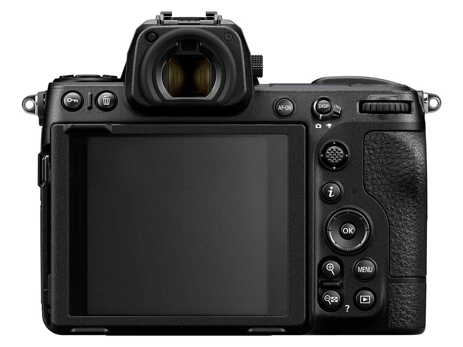 Oczywistą zaletą kwadratowej matrycy jest możliwość wygodnego przełączania między poziomym a pionowym kadrem pełnoklatkowym bez konieczności obracania korpusu – powód, dla którego Z² bazuje na obudowie modelu Z8, a nie Z9. Choć oczywiście zaszły też pewne zmiany – m.in. na górnej ściance pojawił się przycisk do przełączania się między trybem poziomym i pionowym, a wizjer i ekran, by obsłużyć oba formaty, są teraz kwadratowe. Ich rozdzielczości to odpowiednio 7,68 mln punktów (1600 × 1600 px – wizjer bazuje na nowszej konstrukcji z modelu Z6 III) oraz 3.15 mln punktów (1024 × 1024 px).