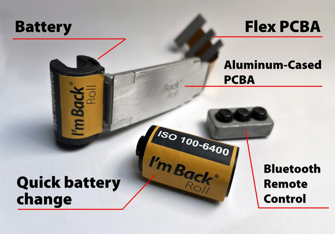 Rozwiązanie takie, choć eleganckie, ma też swoje konsekwencje – nowa wersja „I'm Back” nie posiada ekranu, a wygięta w kształcie rolki filmu bateria nie wystarcza na zbyt długą pracę. Twórcy uważają jednak, że może to nieco przybliżyć użytkowników do „analogowego” stylu pracy i nauczyć oszczędniejszego obchodzenia się ze spustem migawki. Można też zresztą podłączyć do całości power bank przez złącze USB-C.