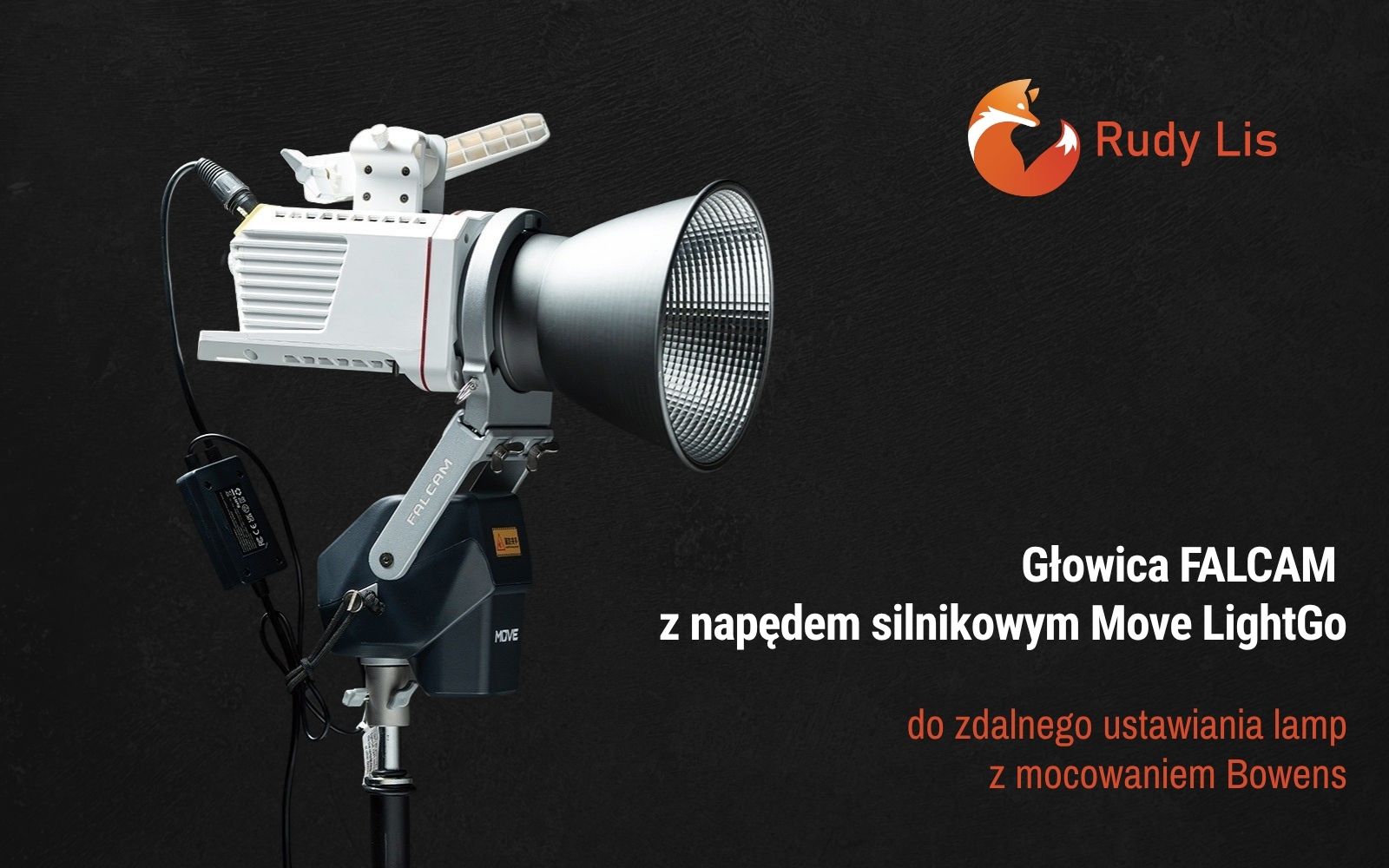 Falcam Move LightGo to wyposażona w silnik głowica oświetleniowa pozwalająca zdalnie sterować pozycją lamp wyposażonych w mocowanie akcesoriów Bowens.