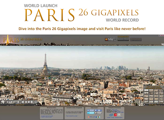 Na stronie http://www.paris-26-gigapixels.com/ udostępniono wirtualną panoramę Paryża. Twórcy chwalą się, iż jest to największa do tej pory stworzona panorama, gdyż jej rozdzielczość wynosi 26 Gpix.