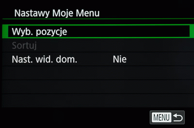 Jak widać, aparat dysponuje dość dużą liczbą opcji konfiguracyjnych. Praktyka pokazuje jednak, że przydałaby się możliwość definiowania własnego menu z najczęściej przez nas wykorzystywanymi funkcjami, co zaoszczędziłoby czasu na ich poszukiwanie. W tym celu konstruktorzy przygotowali opcję „Moje Menu”, gdzie zapiszemy maksymalnie 6 funkcji.