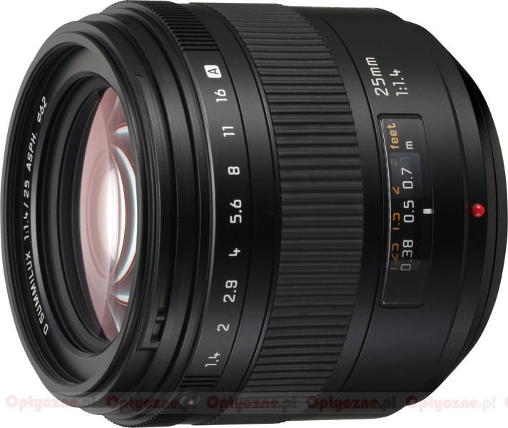 Summilux 25 mm f/1.4 zbudowany jest z 10 soczewek ułożonych w 9 grupach. Wśród nich znajdują się jedna soczewka ze szkła Super ED oraz trzy ED, co ma znacznie zminimalizować aberracje chromatyczną. Obiektyw ostrzy od 0.38 m.