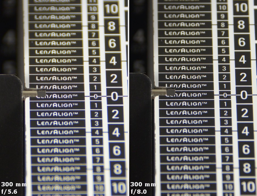 Po pierwsze, dla każdej ogniskowej znajdziemy takie wartości przysłon, gdzie aberracja sięga poziomu dużego. Katastrofą można jednak nazwać zachowanie dla ogniskowych 50–100 mm, gdzie musimy borykać się z aberracją na poziomie nawet 0.22%. Niewiele lepiej jest dla najkrótszej ogniskowej, bo poziom tej wady zawiera się tam pomiędzy wysokimi wartościami od 0.16% do 0.18%.