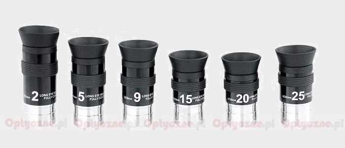 Wszystkie mają średnicę 1.25 cala i charakteryzują się dużym odstępem źrenicy wyjściowej, który wynosi 20 mm. Pole własne okularów o ogniskowych 2 i 5 mm wynosi 45 stopni, pozostałych 50 stopni. Każdy z modeli kosztuje 129 PLN.