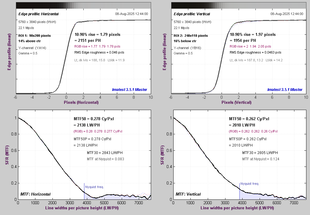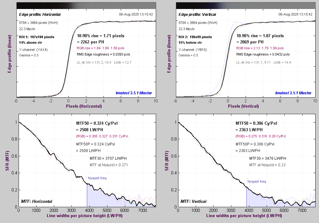Nie widać, by pliki RAW były wyostrzane. Wartości odpowiedzi w częstości Nyquista są dość typowe dla układów bez filtra antyaliasingowego.