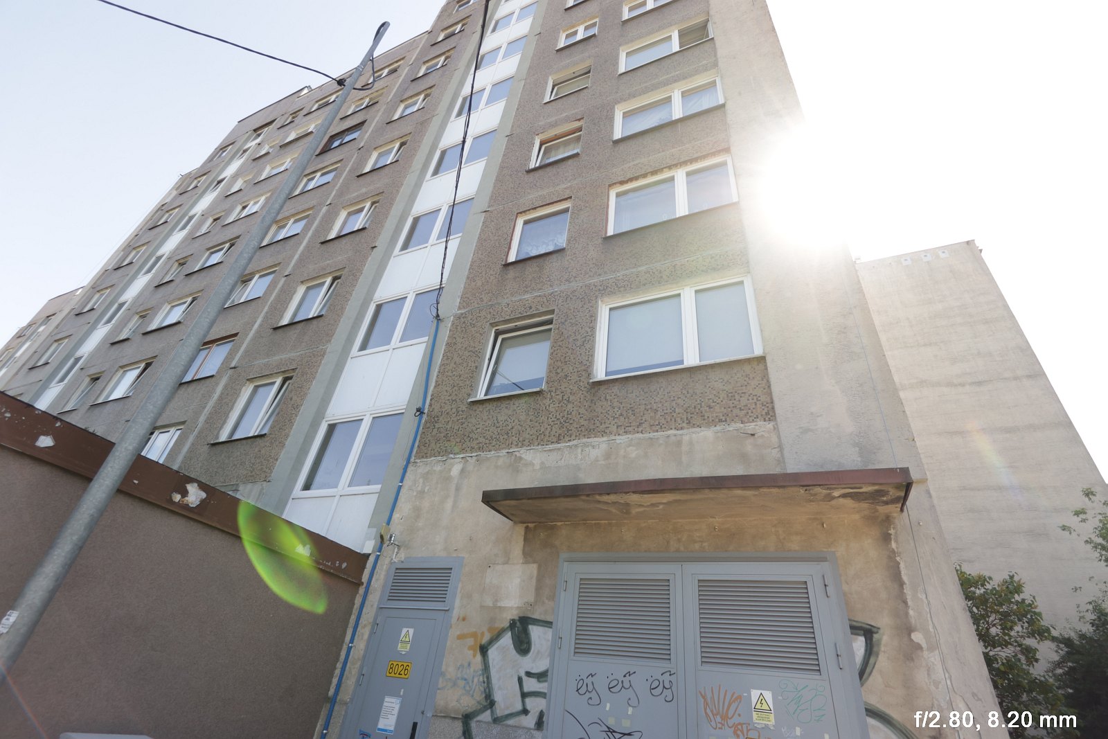 Z ciekawości, sprawdziliśmy jak z manualną korektą dystorsji na najszerszym kącie widzenia obiektywu poradzi sobie Lightroom. Po zaaplikowaniu maksymalnej nastawy (+100) obraz nadal pozostaje zniekształcony, a co gorsza, widać ślady dystorsji falistej. Zatem bez użycia odpowiedniego profilu powrót do prostego obrazu nie będzie łatwy.