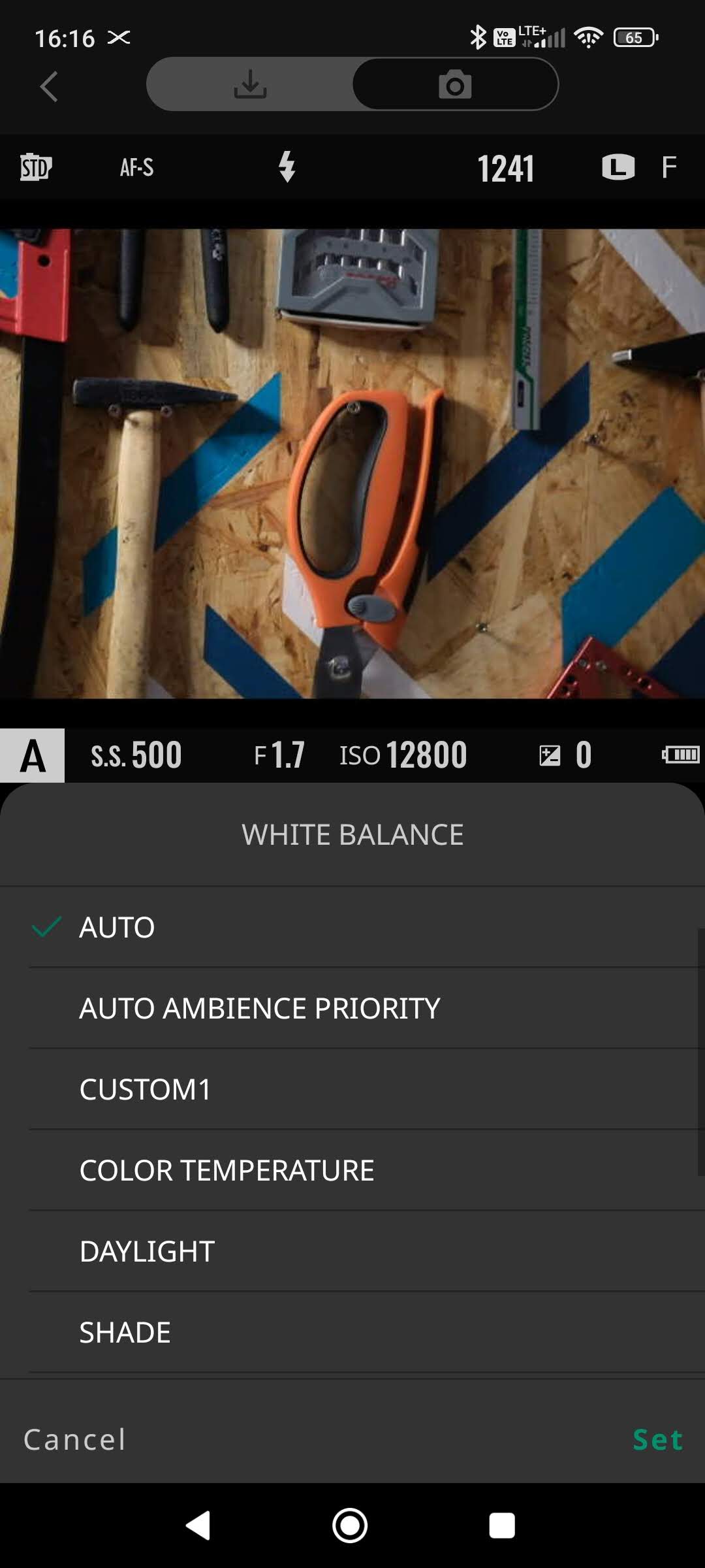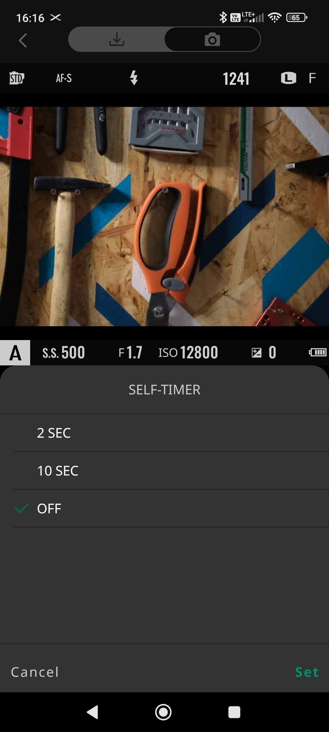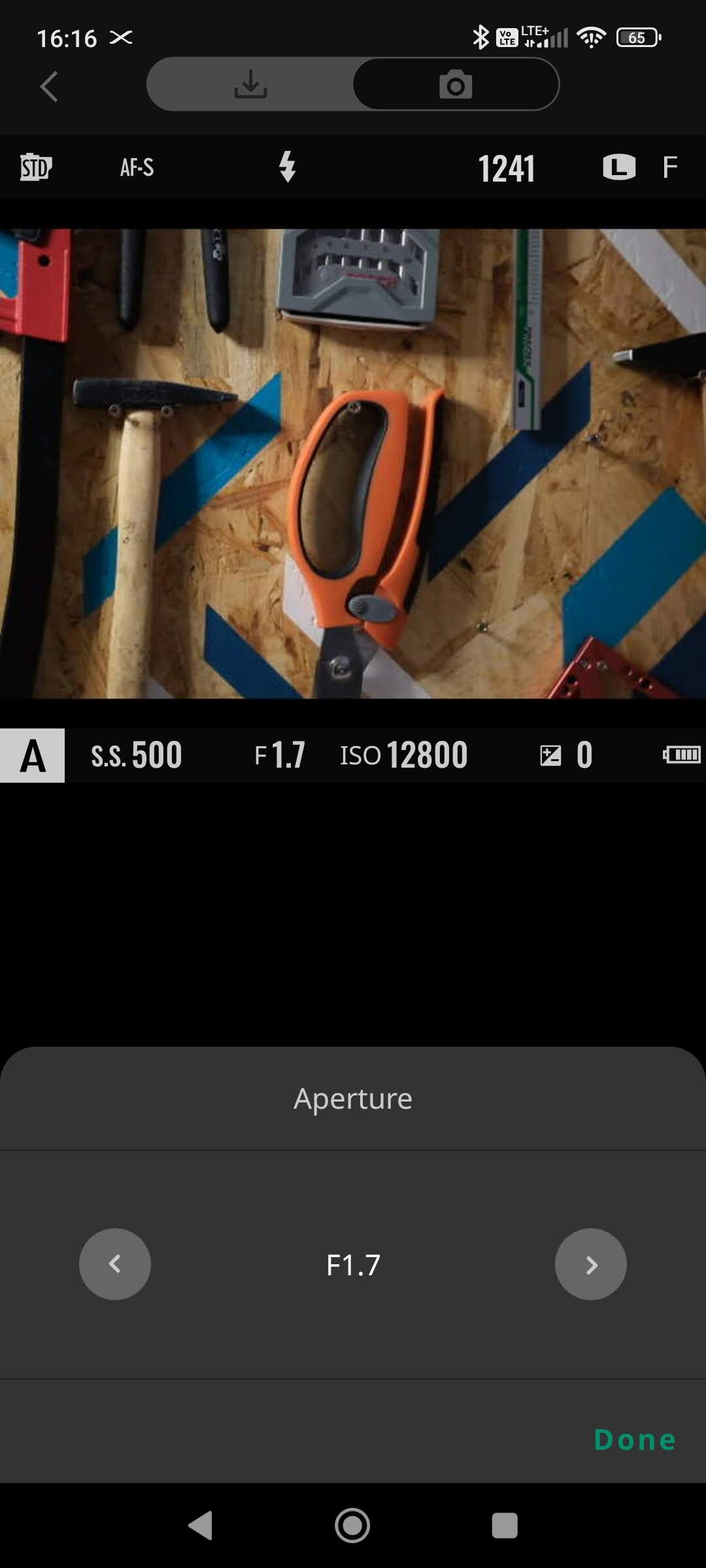 Funkcjonalność nowej aplikacji w zakresie zdalnej obsługi pozostała na bardzo zbliżonym poziomie jak poprzedniej. Pozwala ona na regulację parametrów ekspozycji charakterystycznych dla danego trybu (czasu naświetlania, wartości przysłony, czułości ISO), balansu bieli i trybu symulacji filmu. Co ciekawe, wartość przysłony możemy regulować także w przypadku obiektywów z pierścieniem przysłony. Nie możemy za to zmienić np. formatu zapisu zdjęcia, trybu autofokusa, czy pracy migawki. Dotknięcie palcem w dowolne miejsce w obrębie kadru skutkuje ustawieniem w tym miejscu ostrości. Żeby jednak wybrać inny obszar, trzeba dotknąć dwukrotnie – pierwsze bowiem tylko dezaktywuje poprzednią nastawę ostrości, a dopiero drugie ustawia ją w nowym punkcie.