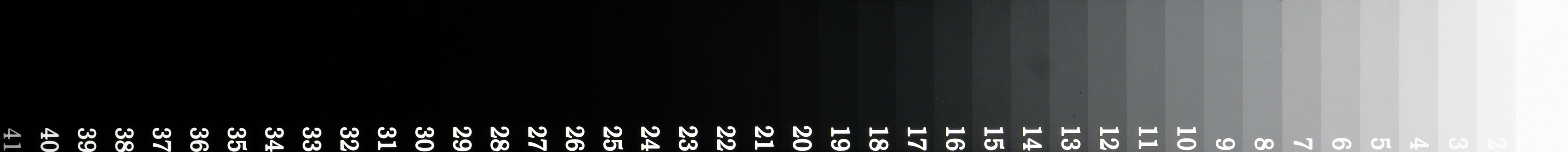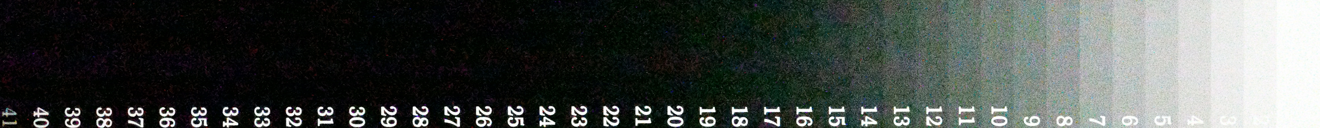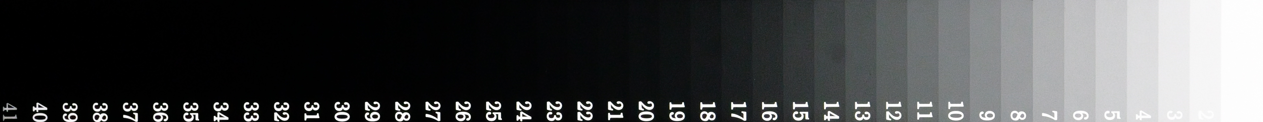 Zakres tonalny na plikach zapisanych w formacie JPEG możemy ocenić wizualnie na wycinkach zdjęć tablicy Stouffer T4110. Kliknięcie na zdjęcie poniżej otworzy wycinek w pełnej rozdzielczości. Odległość pomiędzy sąsiednimi polami szarości wynosi 1/3 EV.