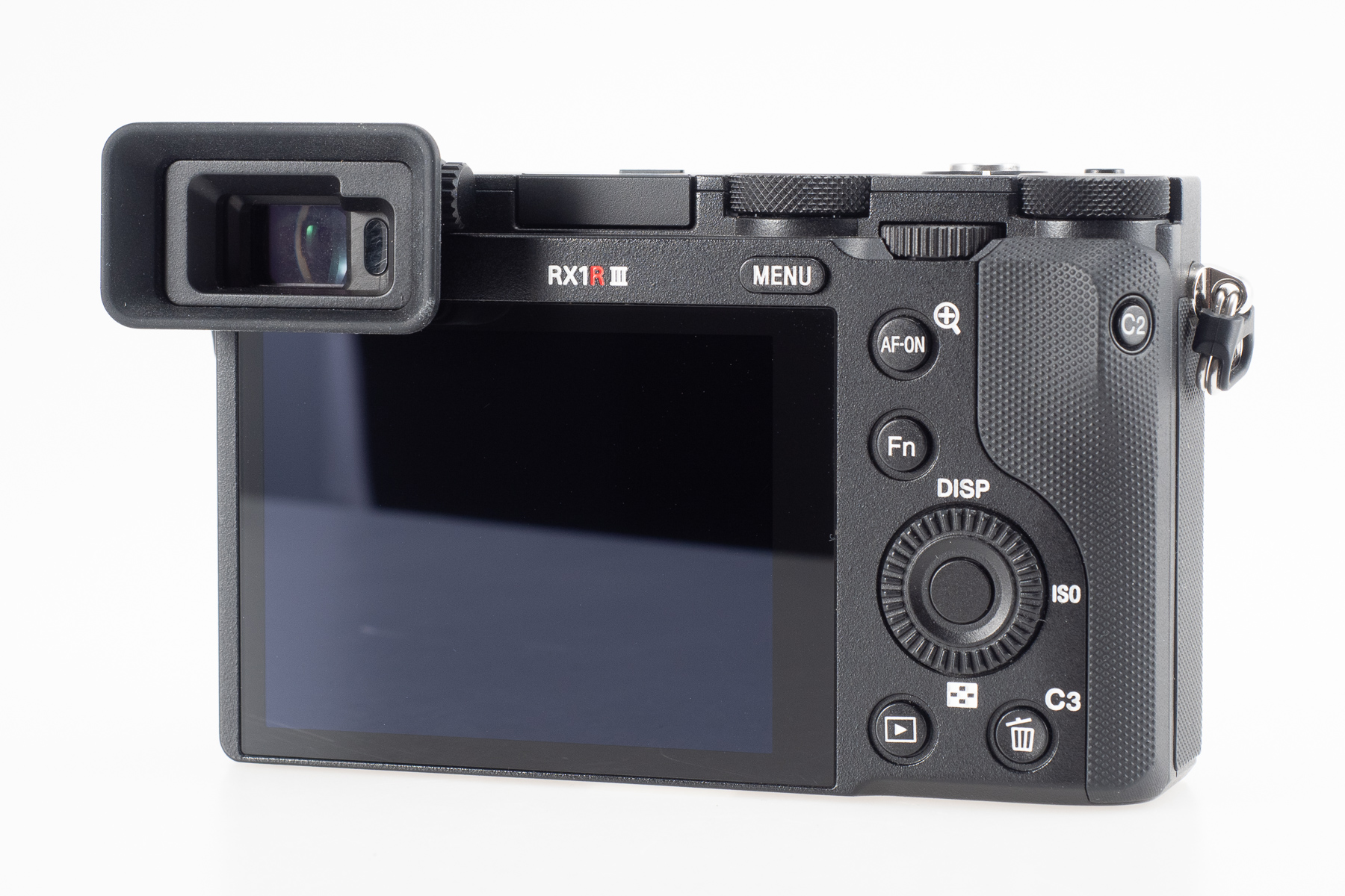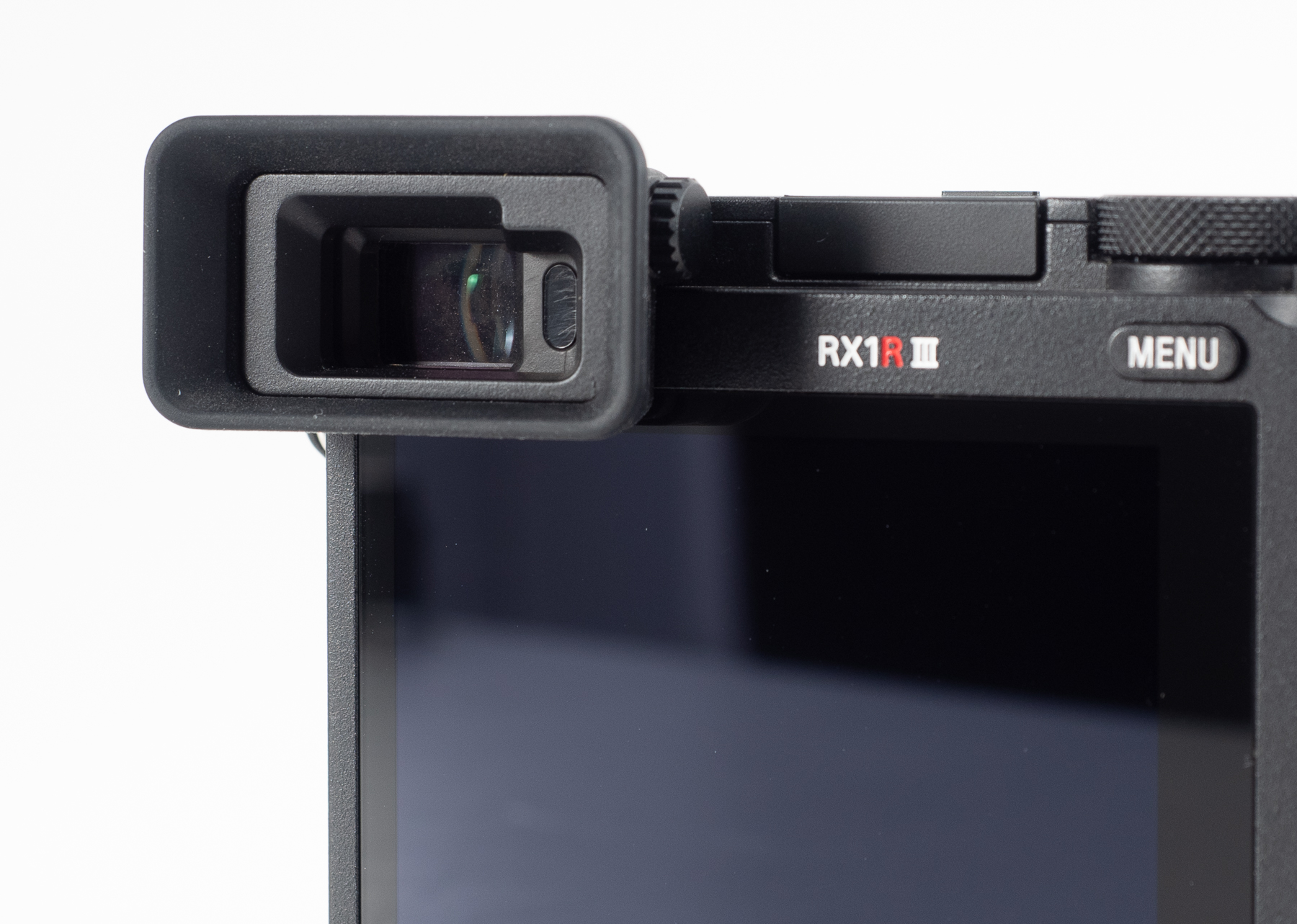 Aparat jest wyposażony w stały (a nie wysuwany jak u poprzednika) wizjer elektroniczny, wykonany w technologii OLED, o takiej samej jak w RX1R II rozdzielczości 2.36 miliona punktów. Zmniejszono niestety powiększenie celownika, z 0.74x do 0.7x. Punkt oczny znajduje się w odległości 22 mm od przedniej soczewki wizjera, a korekcja dioptrii jest możliwa w zakresie od −4 do +3.