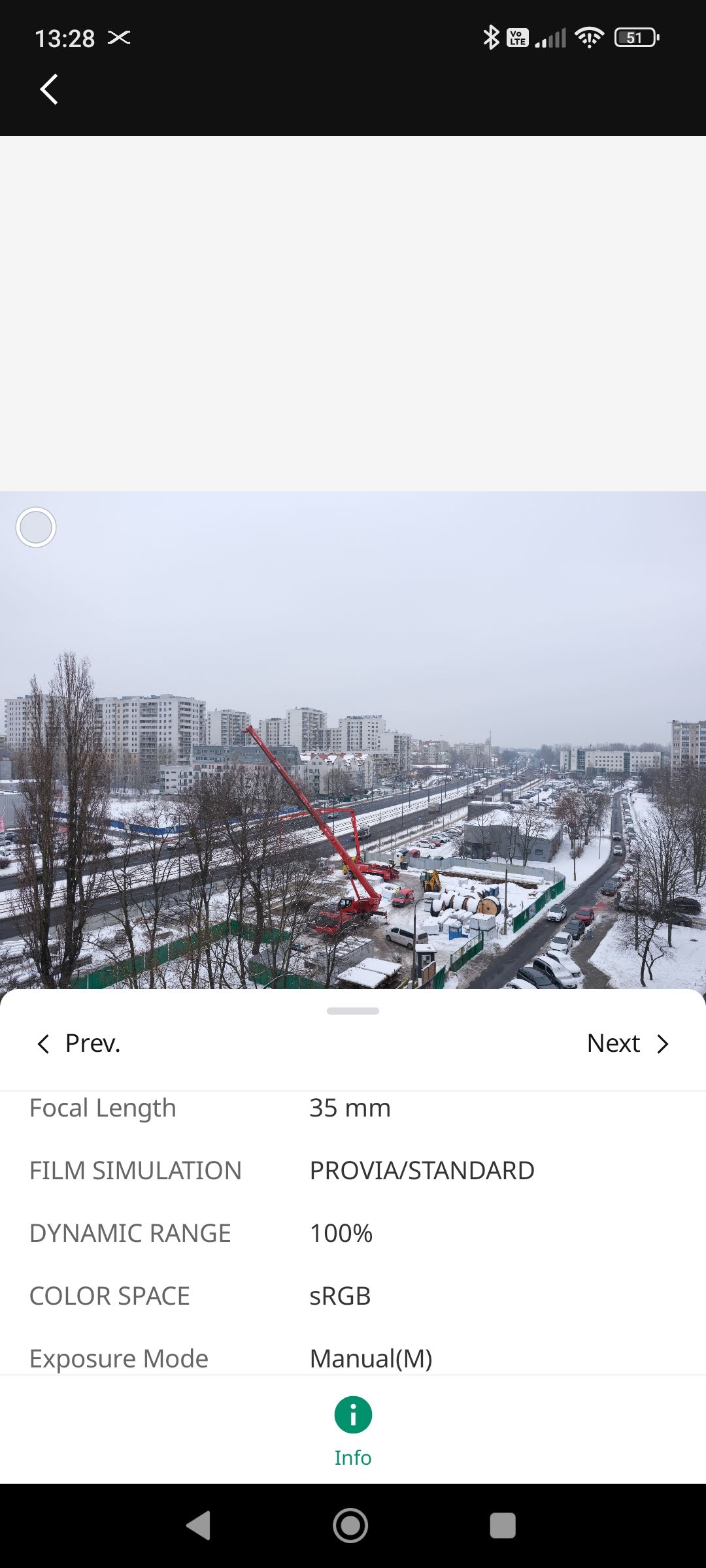 Ogólnie komunikacja bezprzewodowa działała szybko i sprawnie. Parowanie Bluetooth przebiegło bezproblemowo, a nawiązanie połączenia Wi-Fi pomiędzy smartfonem a aparatem zajmowało zwykle niecałe 15 sekund. Kopiowanie zdjęć na urządzenie mobilne w pełnej rozdzielczości trwa ok. 20-25 sekund, a zmniejszonych (rozmiar S) ok. 5-6 sekund. Chyba że zdecydujemy się na format RAW – transfer przykładowego pliku trwał aż 2 min 40 sekund. Przenosić możemy również filmy.