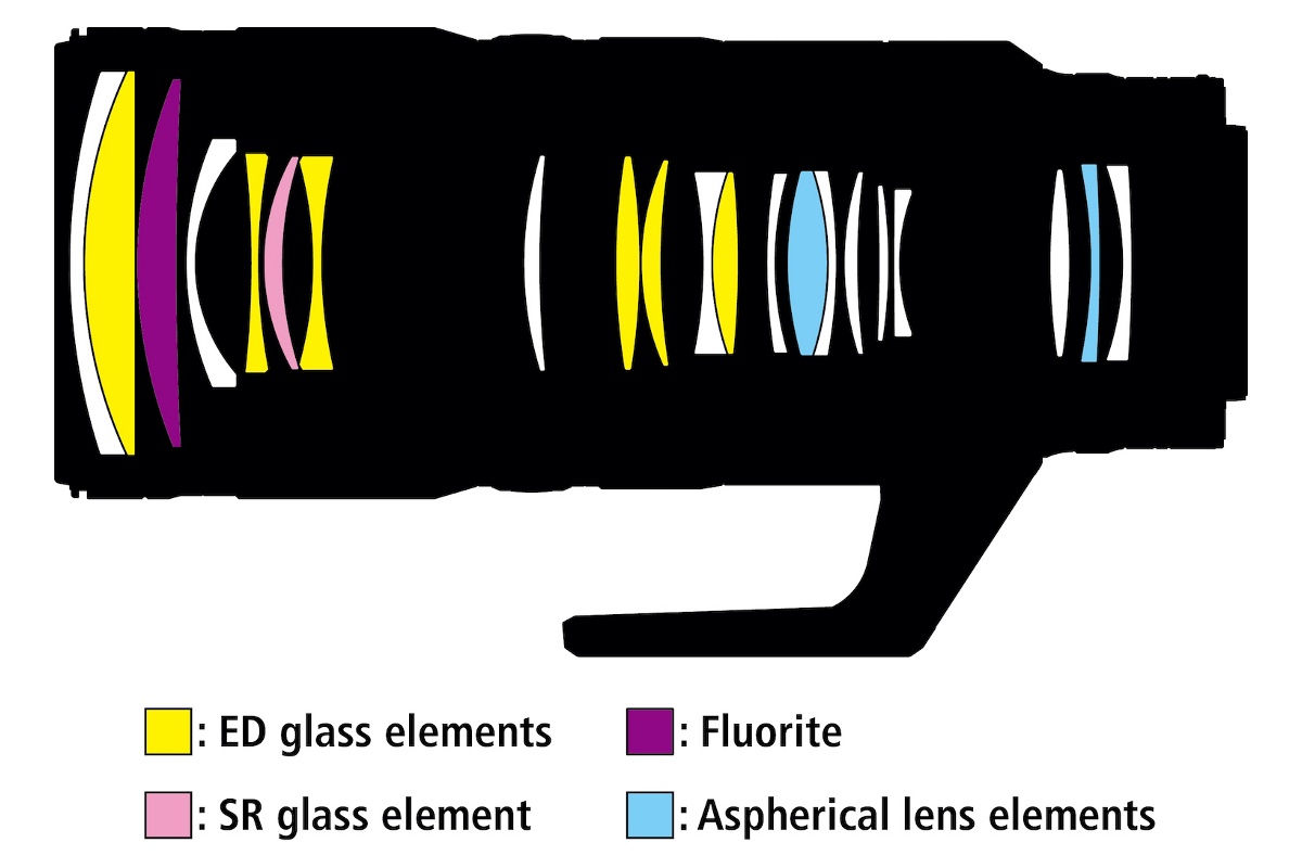 Jeśli chodzi o konstrukcję optyczną, mamy tutaj do czynienia z aż 21 soczewkami ustawionymi w 18 grupach. Producent nie pożałował elementów specjalnych – mamy więc aż sześć soczewek wykonanych z niskodyspersyjnego szkła ED, dwie soczewki asferyczne, jedną soczewkę fluorytową i jedną SR, którego głównym zadaniem jest korygowanie światła niebieskiego. Wewnątrz znajdziemy jeszcze kołową przysłonę o dziewięciu listkach, która może być maksymalnie domknięta do wartości f/22. Producent chwali się zastosowaniem wydajnych powłok antyodbiciowych Nano Crystal Coat, powłok ARNEO oraz hydrofobowych powłok fluorowych na zewnętrznych elementach optycznych.