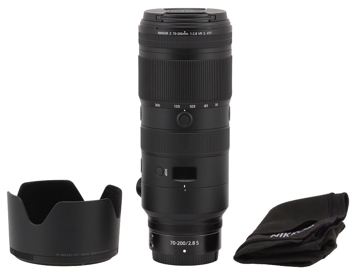 Na poniższym zdjęciu Nikkor Z 70–200 mm f/2.8 VR stoi pomiędzy Nikkorem Z 24–70 mm f/4 S oraz lustrzankowym modelem Nikkor 24–70 mm f/2.8G ED.