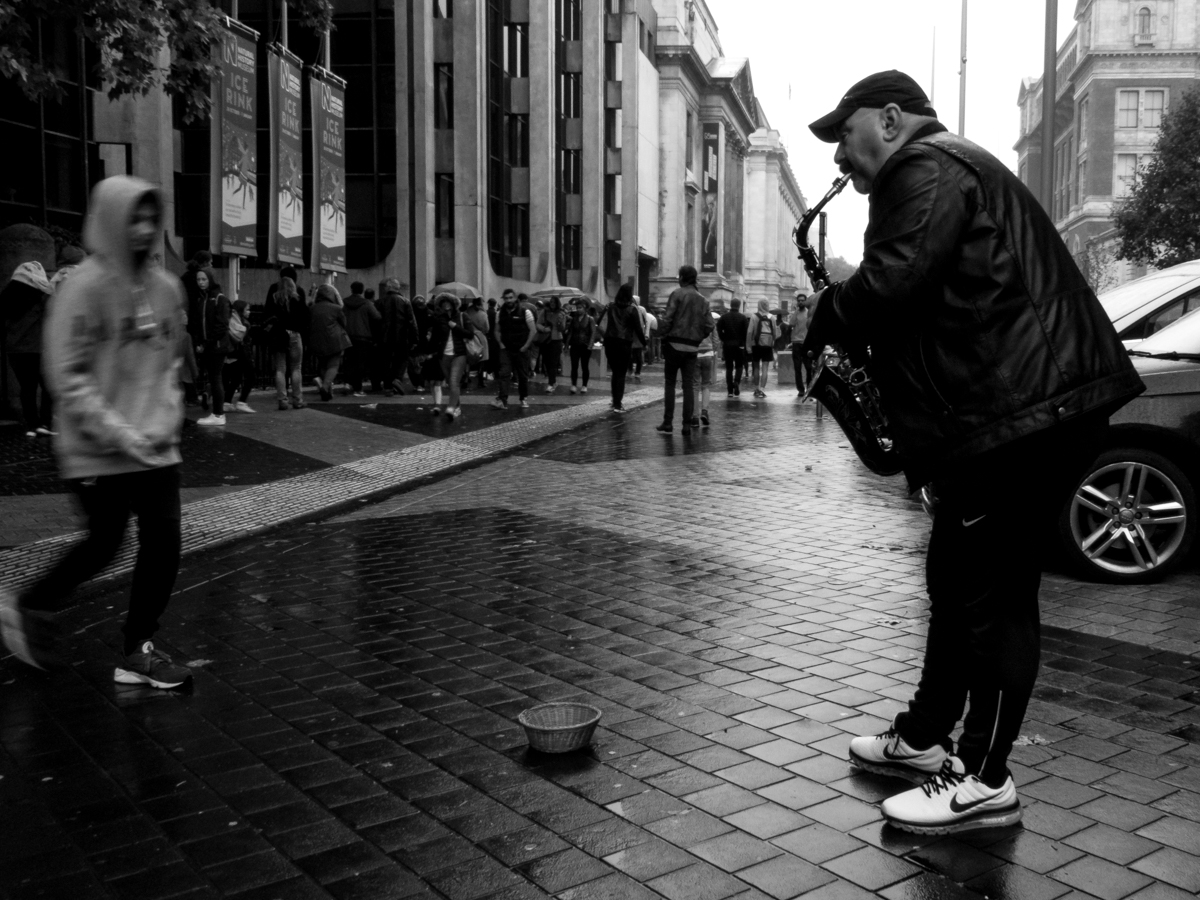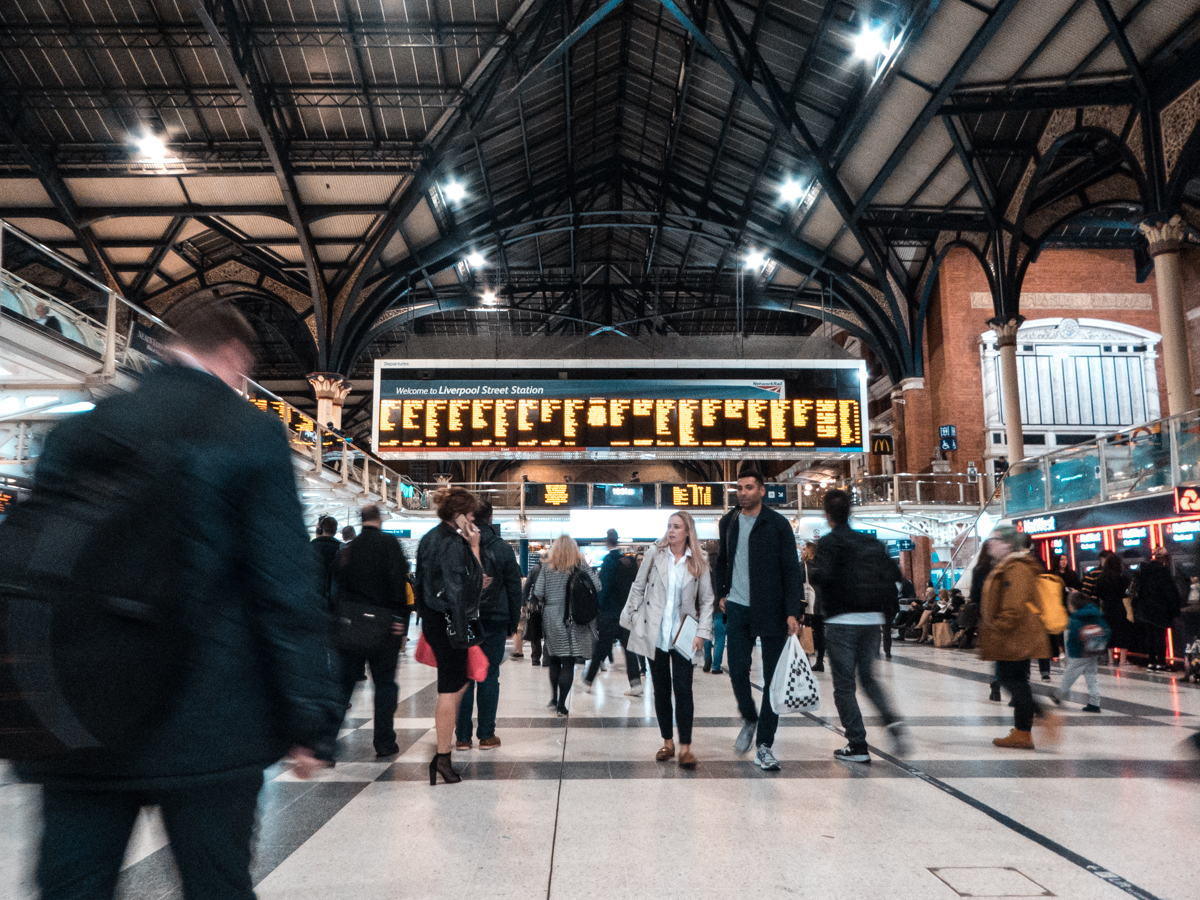 Ostatnie zdjęcie w tym rozdziale wykonałem w okolicach Liverpool Street, skąd wyruszyłem na lotnisko Londyn Stansted na samolot powrotny do Warszawy. Co ciekawe - ponownie skorzystałem tutaj z szerokiego zakresu ogniskowych TZ90 i ustawiłem aparat na 720 mm. Dzięki szybkiej serii udało mi się uzyskać satysfakcjonujące mnie ujęcie. Nie zawiodła również stabilizacja, bowiem zdjęcie wykonałem przy czasie 1/125 s.
