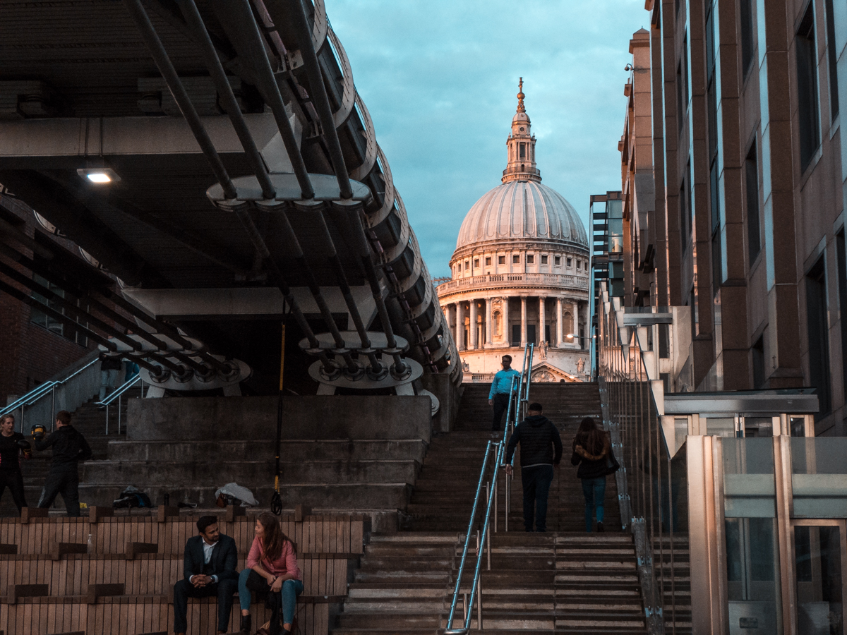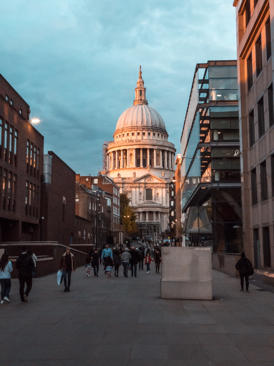 Po spacerze przez Oxford Street udałem się do mojej ulubionej londyńskiej dzielnicy - The City. Moim zdaniem, jest ona jedną z najbardziej fotogenicznych (obok Kensington) części miasta. Po raz pierwszy użyłem też ogniskowych z końca zakresu - na przykład zdjęcie ludzi na moście wykonałem przy maksymalnym wysunięciu obiektywu, czyli ogniskowej 720 mm. Zbliżenie na katedrę św. Pawła to z kolei 210 mm. Po przeprowadzonym jakiś czas temu teście kompaktów wiedziałem, że TZ90 świetnie radzi sobie w praktycznie całym zakresie ogniskowych. Nie miałem zatem żadnych oporów, aby wykorzystać go do granic możliwości.