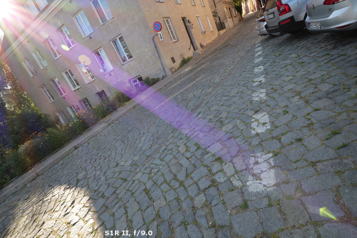 Niestety Panasonic Lumix S 18 mm f/1.8 nie sprawił się tutaj aż tak udanie. Gdy pracujemy w okolicach maksymalnego otworu względnego, zachowanie jeszcze nie wygląda źle. Choć nawet w tej sytuacji i to wtedy, gdy słońce znajduje się poza kadrem, jesteśmy w stanie złapać całkiem wyraźne bliki.