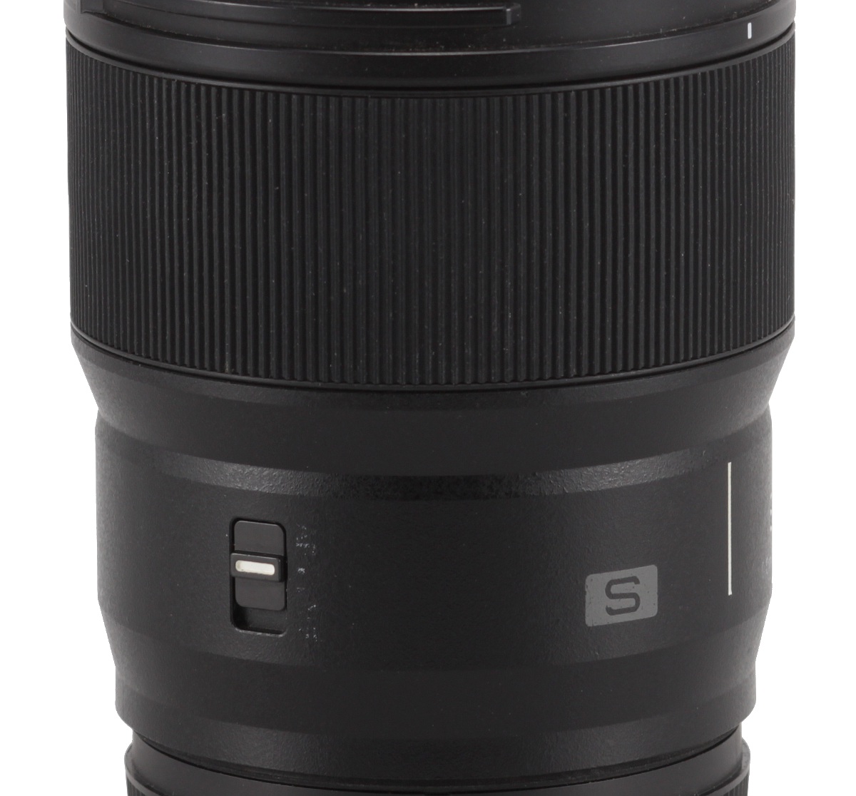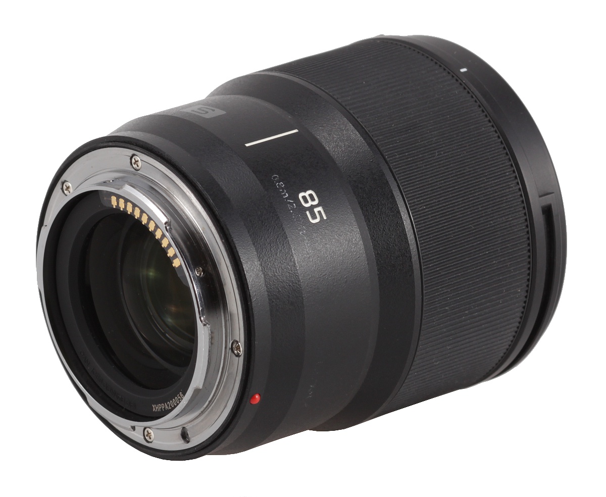 Właściwy korpus obiektywu pokryto czarnym tworzywem sztucznym. Najpierw znajdziemy tam czerwoną kropkę ułatwiająca mocowanie obiektywu do aparatu. Idąc dalej i spoglądając z góry, ujrzymy białą pionową kreskę - po jej lewej stronie znajduje się duża litera "S", a po prawej oznaczenie ogniskowej "85" oraz zakresu ustawiania ostrości "0.8m/2.62ft-∞".